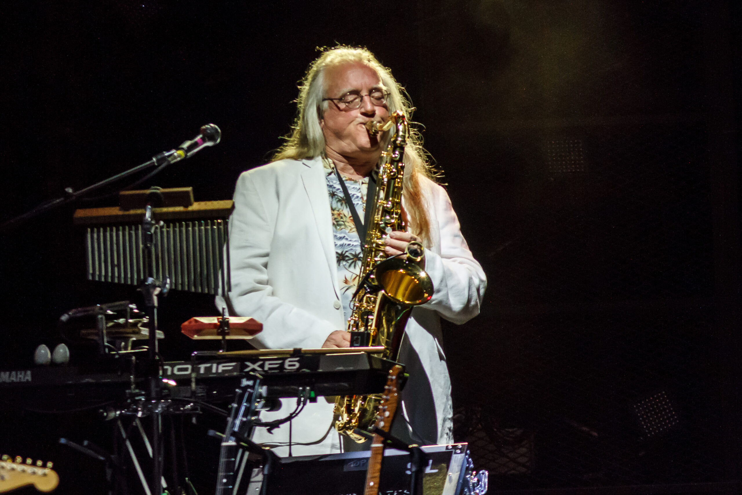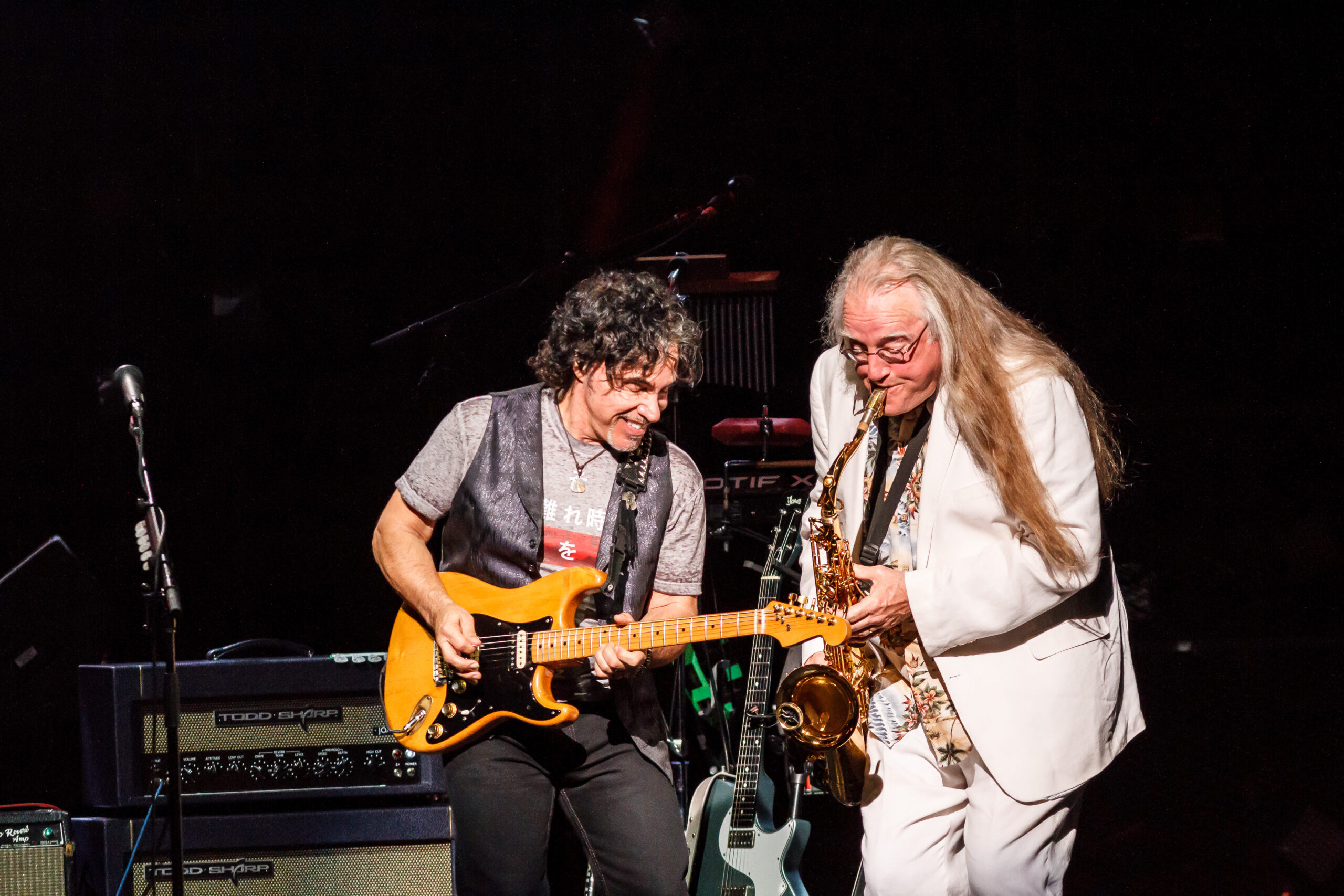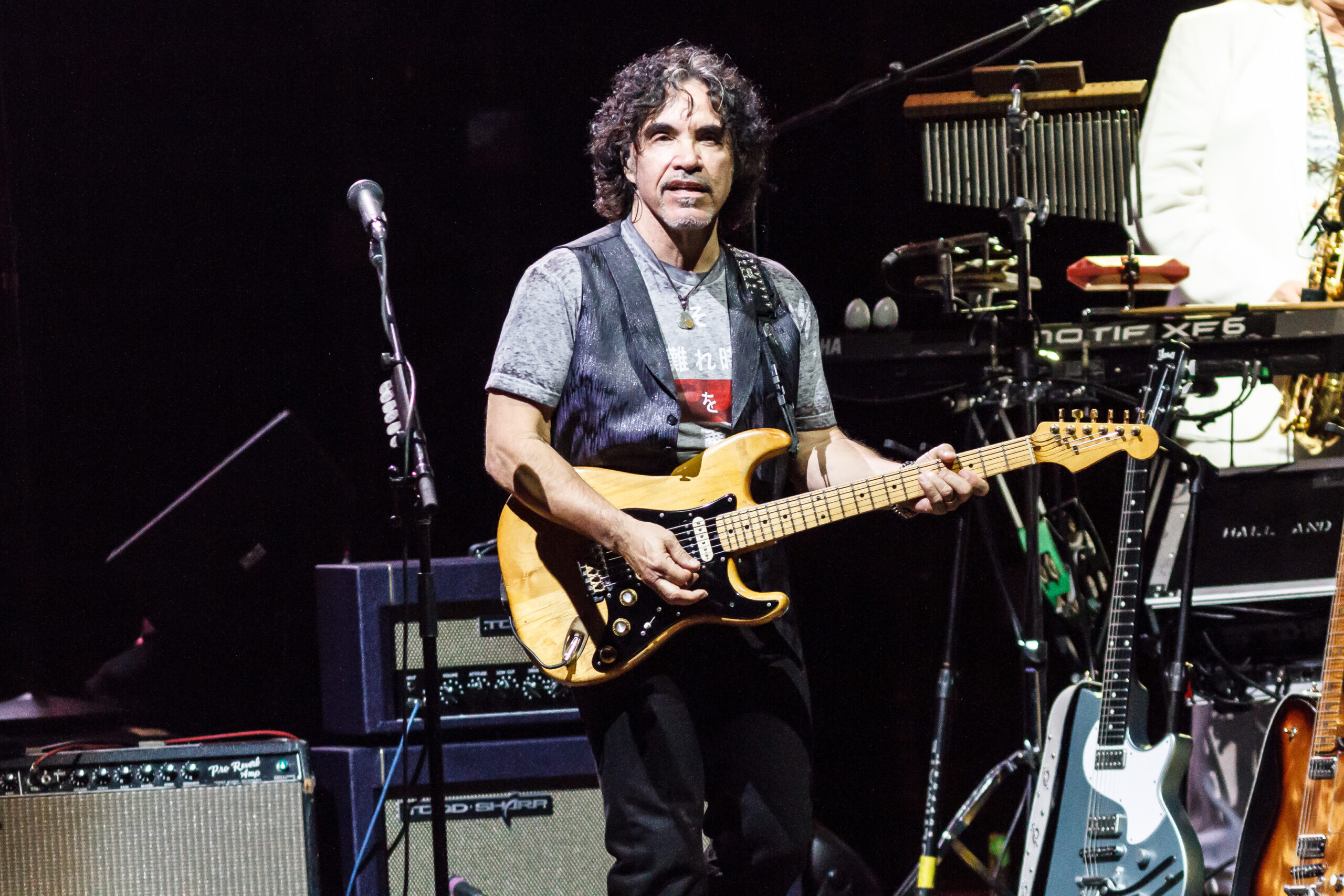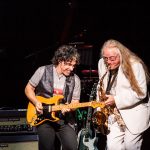 They started their set with 2 of their number 1 hits and fan favorites, Maneater and Out of Touch.  From the beginning of the show, the audience was up and dancing.  During Las Vegas Turnaround two ladies in the front row were dancing and each time the band sang “Turnaround” the ladies would spin around.  At one part of the song, Charles came out to the front of the stage with his sax and jammed with John.  Daryl Hall introduced the next song, She’s Gone and said it was the song that helped get them out of Philly.  During She’s Gone the audience was not only dancing but started singing along with the band.  At this point in the show the band slowed the tempo down a little on the next song, Sara Smiles.  During Sara Smiles, Pat Buchanan got to do his first guitar solo.  For the remainder of the show, Daryl Hall gave up is guitar and got behind his keyboard.  The set ended with the band playing I Can’t Go for That, with Charles walking across the stage playing his sax and jamming with Pat and John.  The band came back for a 2 song encore that included Kiss on my List and Private Eyes.