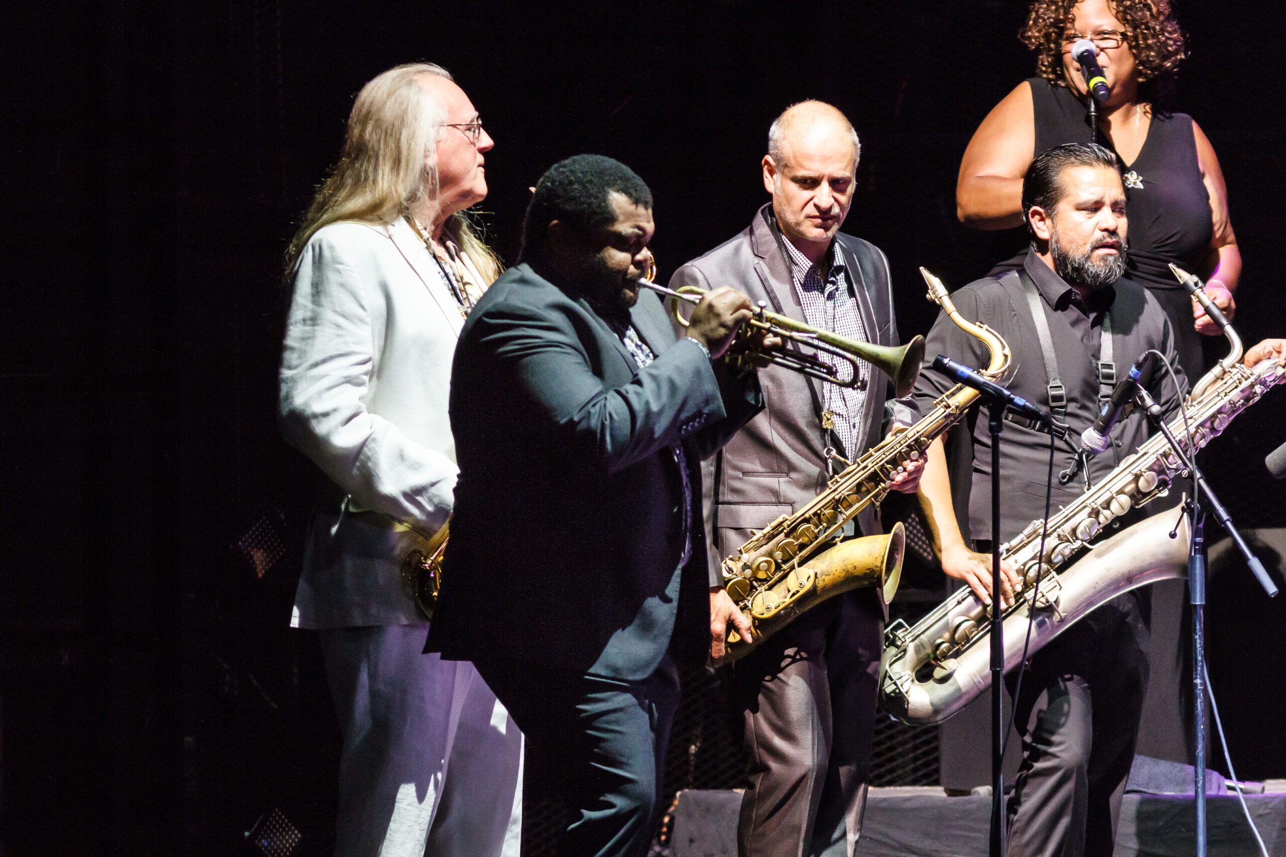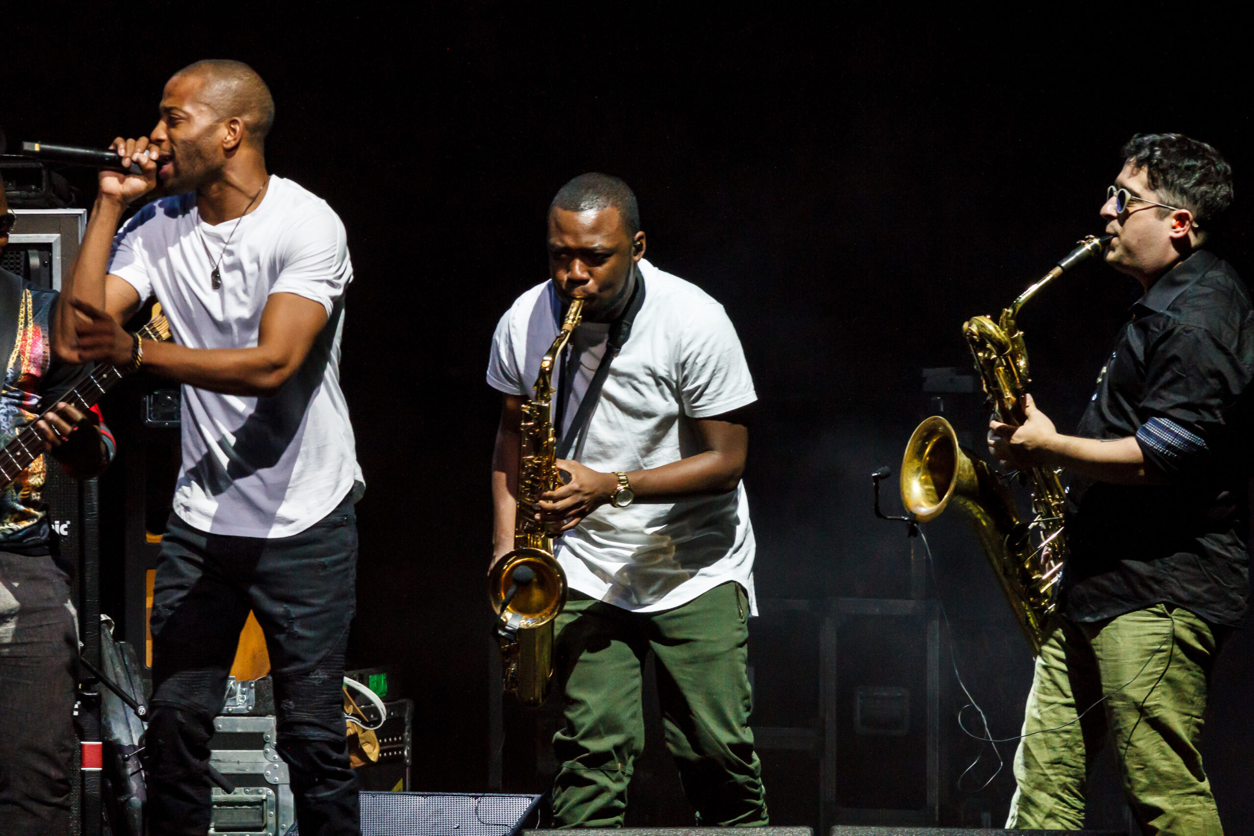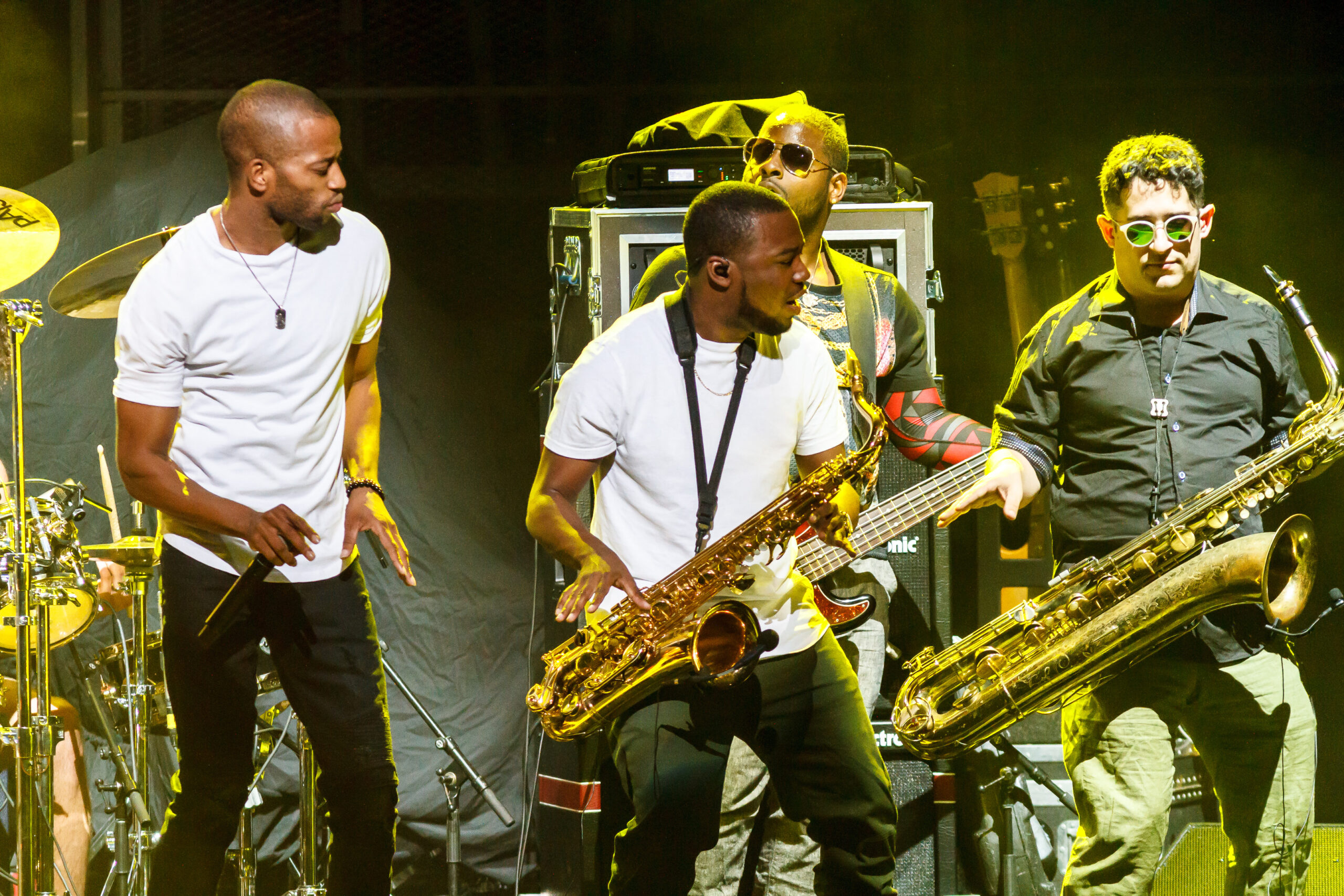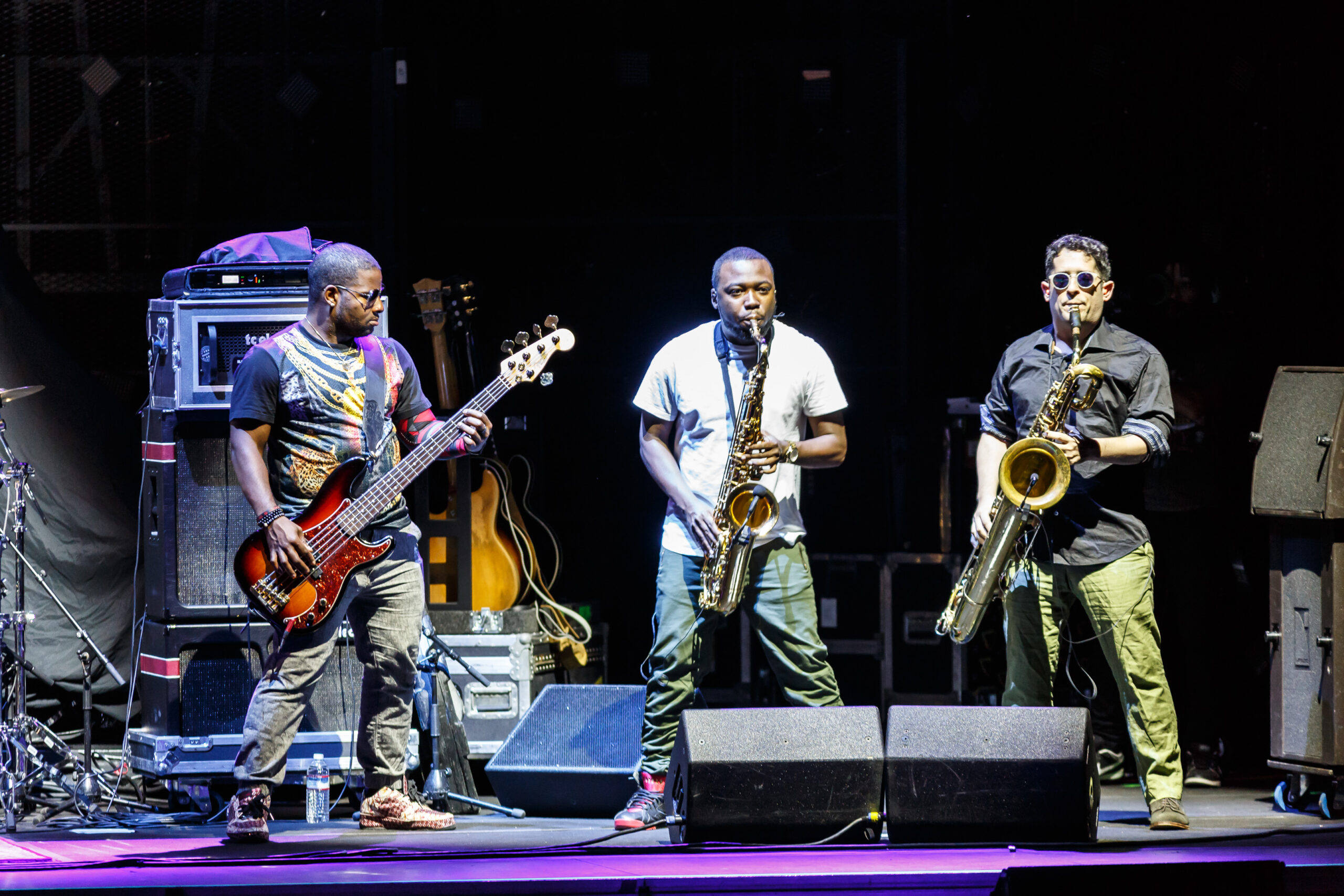 tromboneshortyandorleansavenue-2016-7363The concert started with Trombone Shorty & Orleans Avenue.  Like their name says, they are from New Orleans and play a fun upbeat style of jazz.  Troy (Trombone Shorty) Andrews is the front man for the group playing his trombone and singing.  He roamed around on the stage and would jam with the other band members.  Their music reminded me a lot of the music played on HBO’s “Treme” which is also set in New Orleans and where the band members comes from.  I felt that their style of music was a little out of place with the rest of the bands tonight.  They do an upbeat jazz, while the other bands tonight are more rock and roll, funk and blues based.  They did what all lead up bands need to do, they set the tempo for the night with an upbeat fun musical show.  I can’t wait to see them again in March of next year when they come back to town with the Red Hot Chili Peppers.  If you like upbeat jazz and just fun music, then you should definitely checkout this band.  The band is made up of: BK Jackson on Tenor Sax, Dan Oestreicher on Baritone Sax, Joey Peebles on drums, Michael Ballard on bass, Pete Murano on guitar and Troy “Trombone Shorty” Andrews on Trombome.