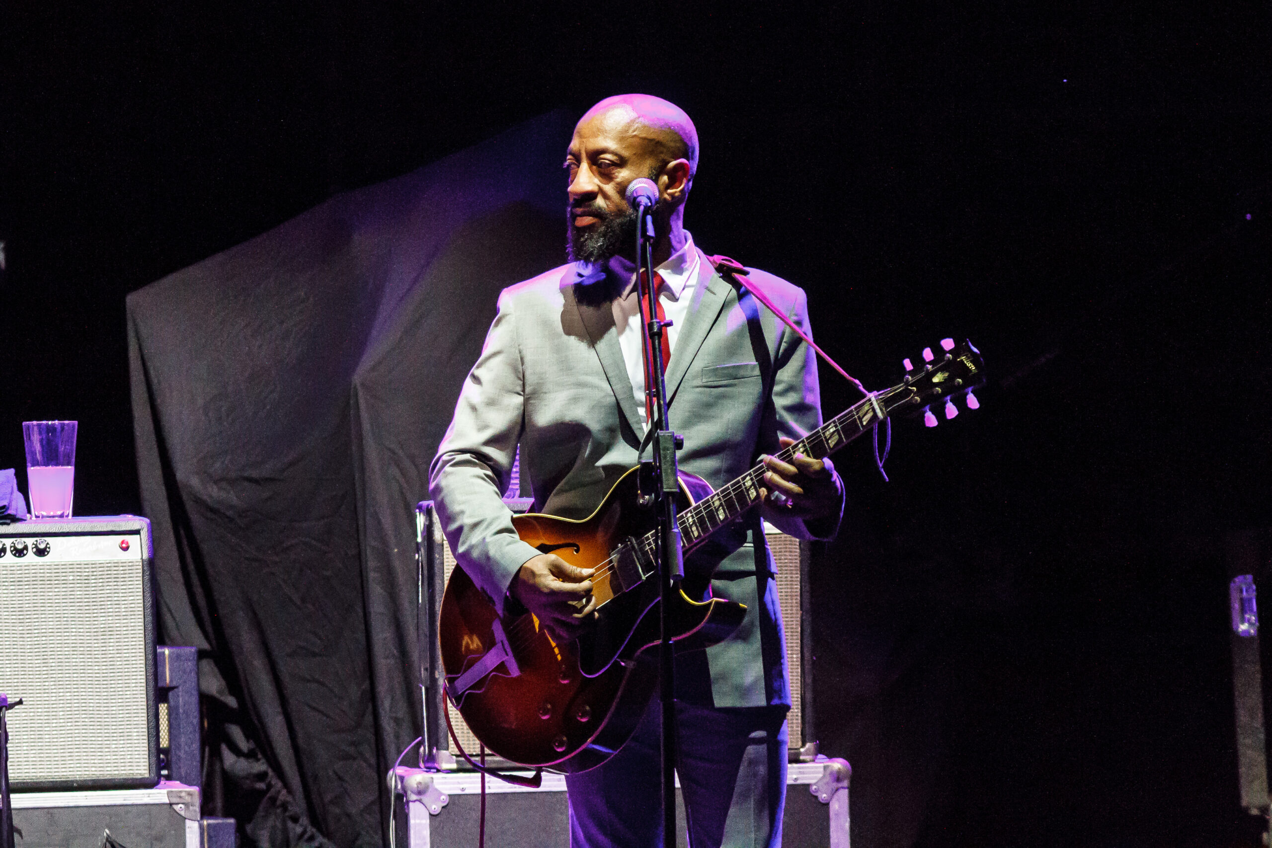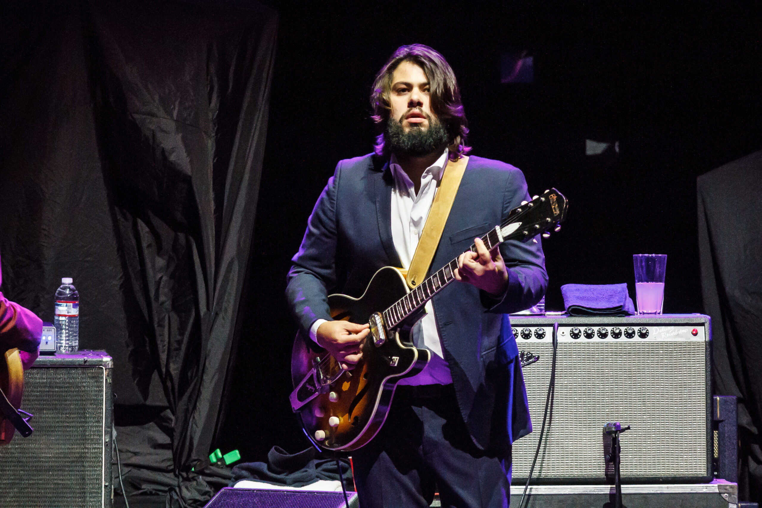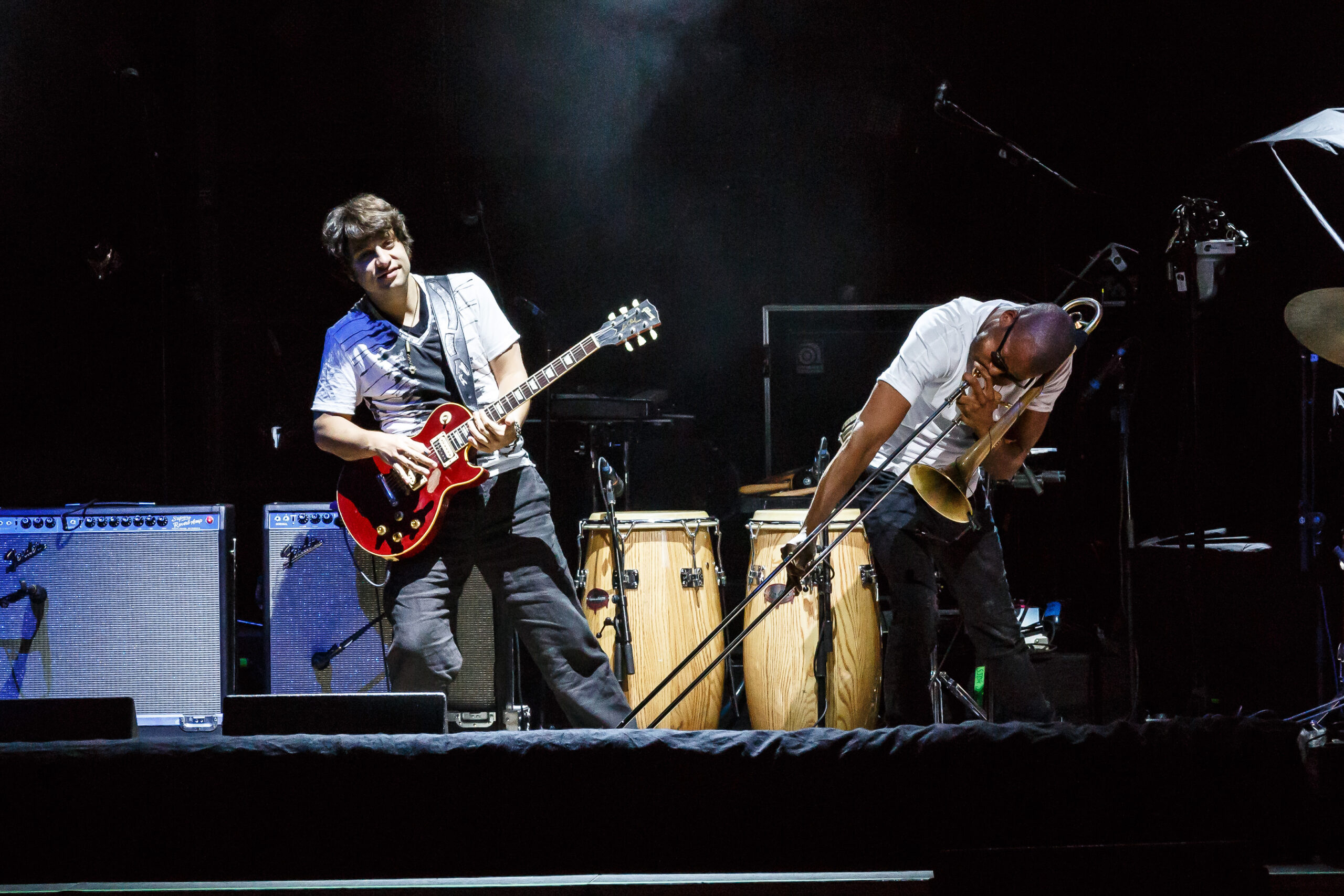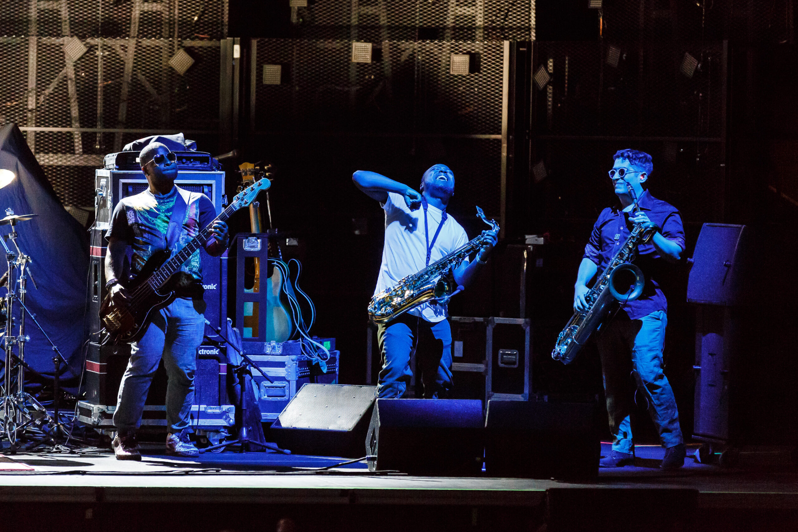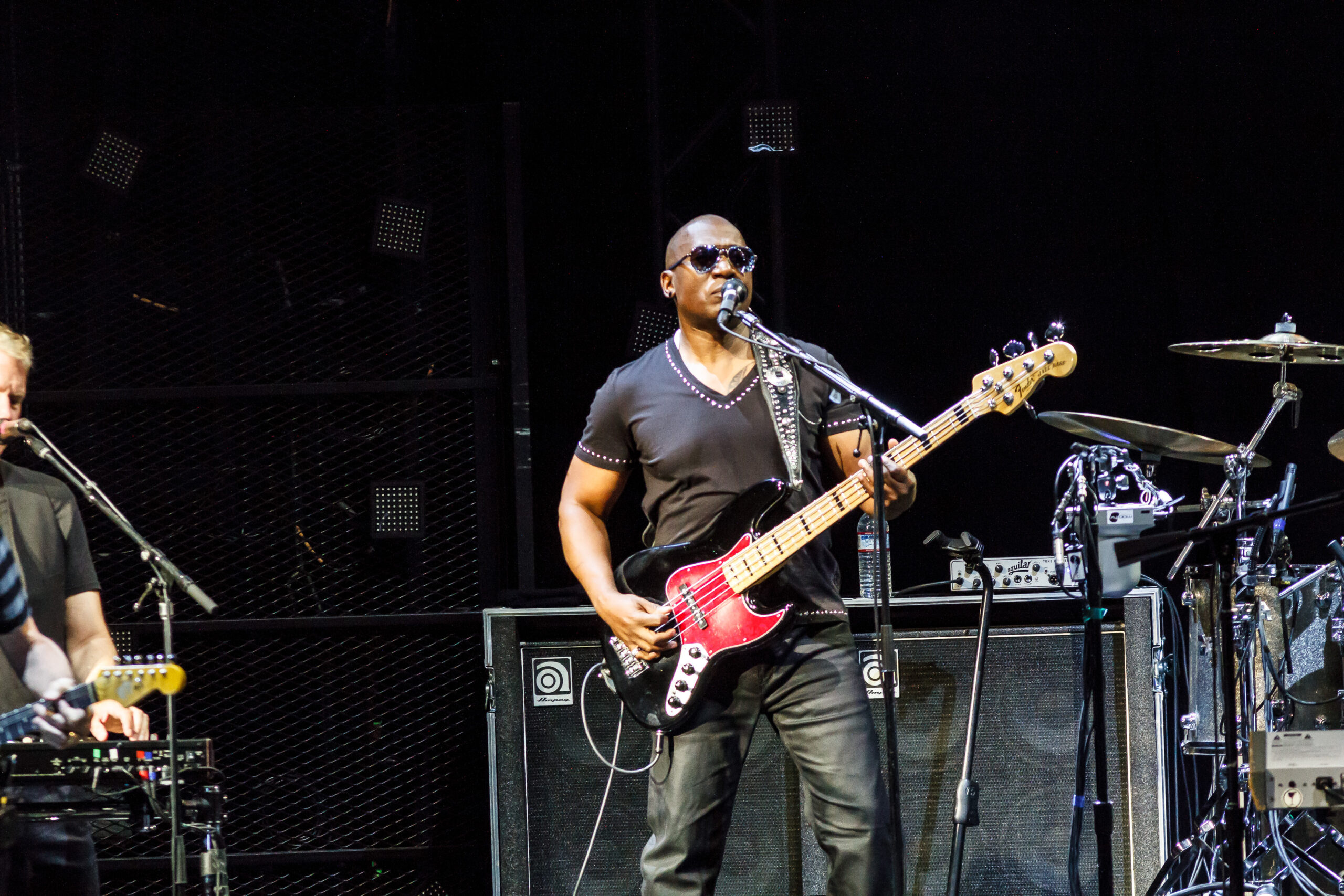 tromboneshortyandorleansavenue-2016-7363The concert started with Trombone Shorty & Orleans Avenue.  Like their name says, they are from New Orleans and play a fun upbeat style of jazz.  Troy (Trombone Shorty) Andrews is the front man for the group playing his trombone and singing.  He roamed around on the stage and would jam with the other band members.  Their music reminded me a lot of the music played on HBO’s “Treme” which is also set in New Orleans and where the band members comes from.  I felt that their style of music was a little out of place with the rest of the bands tonight.  They do an upbeat jazz, while the other bands tonight are more rock and roll, funk and blues based.  They did what all lead up bands need to do, they set the tempo for the night with an upbeat fun musical show.  I can’t wait to see them again in March of next year when they come back to town with the Red Hot Chili Peppers.  If you like upbeat jazz and just fun music, then you should definitely checkout this band.  The band is made up of: BK Jackson on Tenor Sax, Dan Oestreicher on Baritone Sax, Joey Peebles on drums, Michael Ballard on bass, Pete Murano on guitar and Troy “Trombone Shorty” Andrews on Trombome.