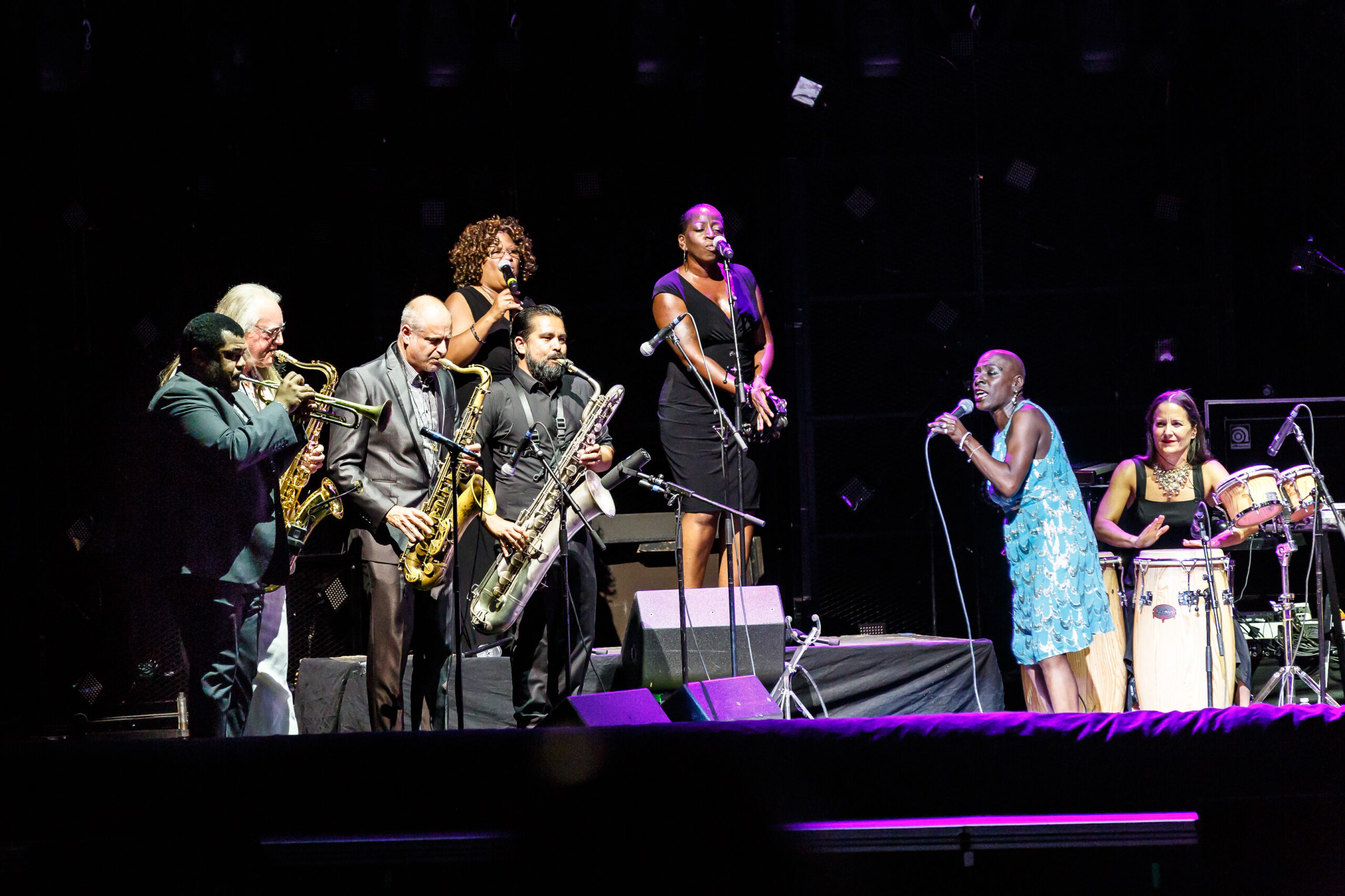 The middle band of the show was Sharon Jones and the Dap-Kings.  They are an American funk and soul band out of New York City.  Their set started with the band playing the first song without Sharon and then they introduced Sharon for the remainder of the set.  Again they kept the tempo upbeat as Sharon moved and danced around the stage as she sang.  We were told that Sharon was recovering from chemotherapy, but you would never have believed that when you saw her on stage.  She had a presence and energy that a lot of us wished we had.  She would dance around the stage singing to the audience and interacting with the other musicians.  For me the best part was the horn section.  They were amazing and even had Charles DeChant (Hall & Oates) play sax with them.  Their music reminded me a lot of the Latin music of the 60s and 70s, it was fun and energetic and it looked like the band was really having fun on stage.  If you like this style of music or just want to have a good time at a concert, then this is definitely a band you want to see and enjoy.  It was really nice when Sharon introduce each of the band members and allowed them a mini solo during the third song.  The band members are: Sharon Jones (Lead Vocals), Saundra Williams (Backup Vocals), Starr Duncan-Lowe (Backup Vocals), Gabriel “Bosco Mann” Roth (Bass), Binky Griptite (Guitar / MC), Joseph Crispiano (Guitar), Brian Wolfe (Drums), Elizabeth Pupo-Walker (Percussion), Cochemea Gastelum (Baritone Sax), Neal Sugarman (Tenor Sax) and Chris Davis (Trumpet).