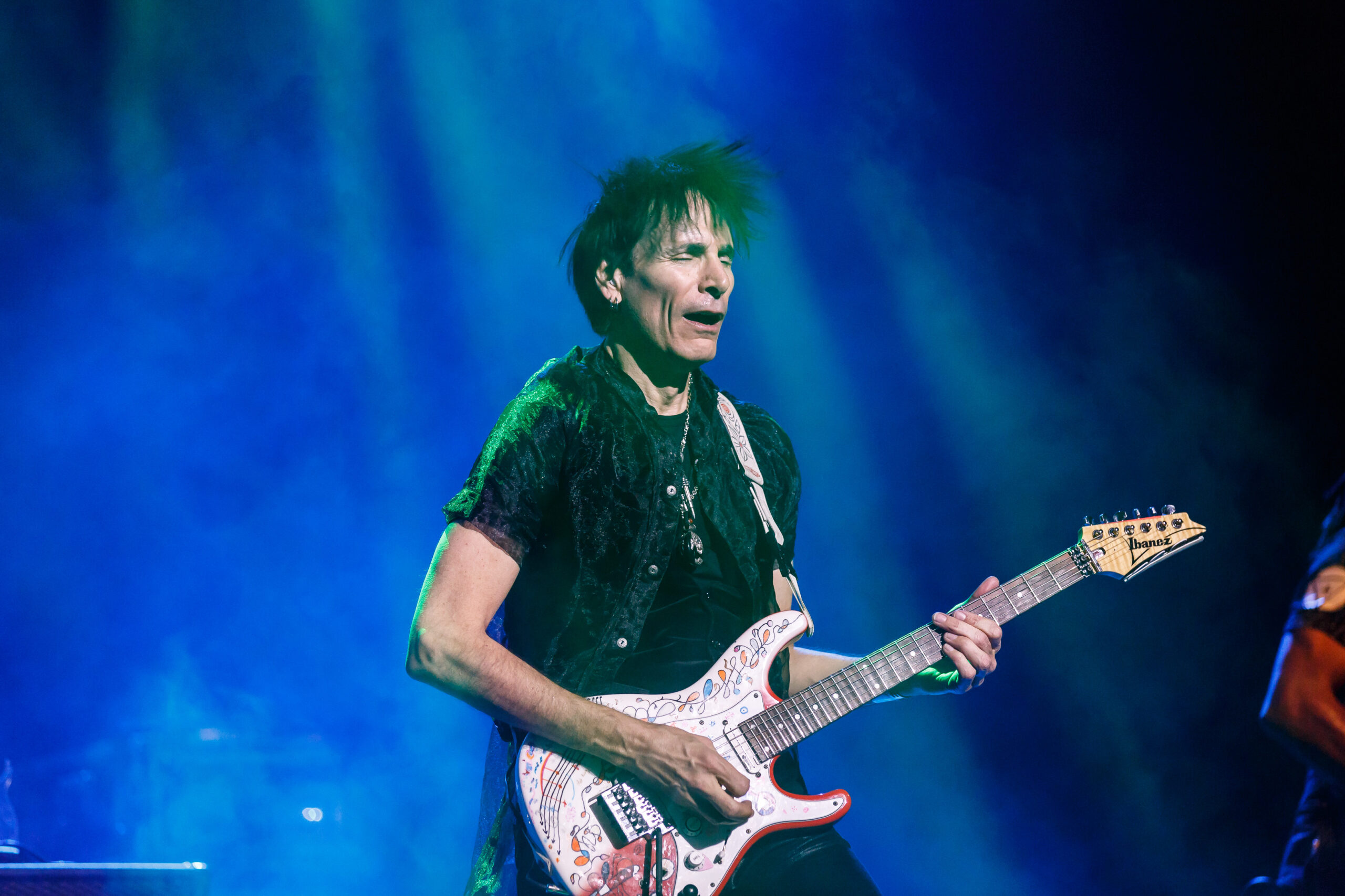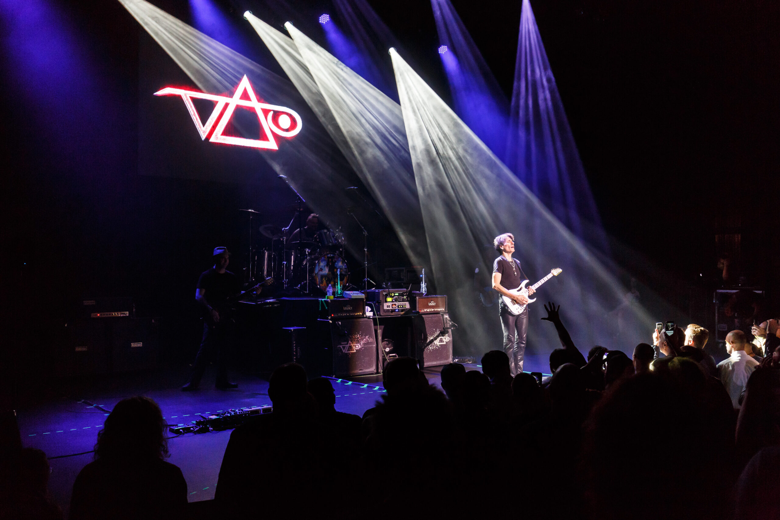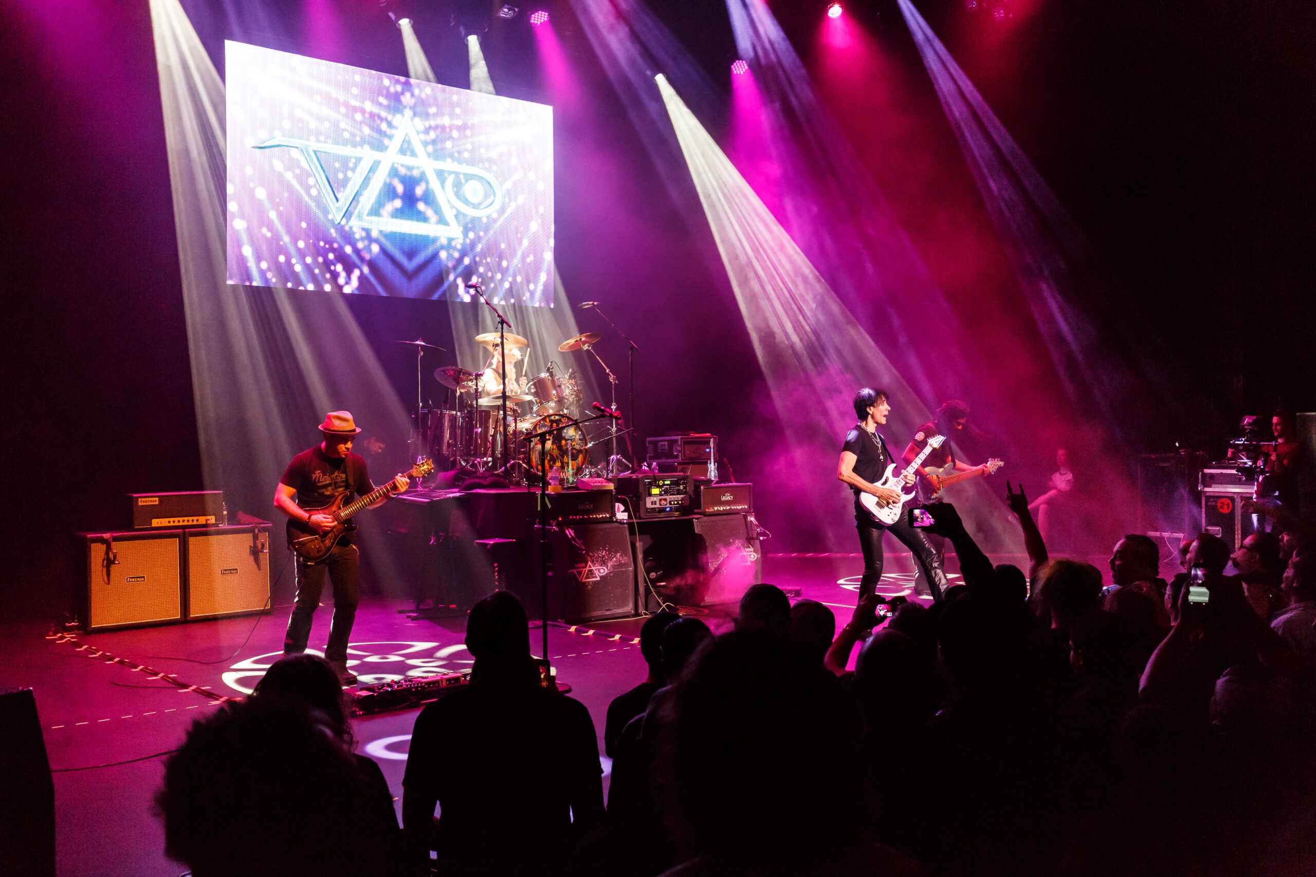 It didn’t take long for the show to get going, as a quick video of Vai’s performance as Satan’s best guitar player in the movie Crossroads kicked off the show into the song “Bad Horsie.”  Draped in a reflective and neon cloak (that shot lasers into the crowd), Vai made his presence known from the very beginning.  With the band quickly joining in, a brief set of songs including “Crying Machine” and “Gravity Storm” would soon lead into the performance, in its entirety, of Passion and Warfare.  It’s here where the special nature of the show truly took shape.