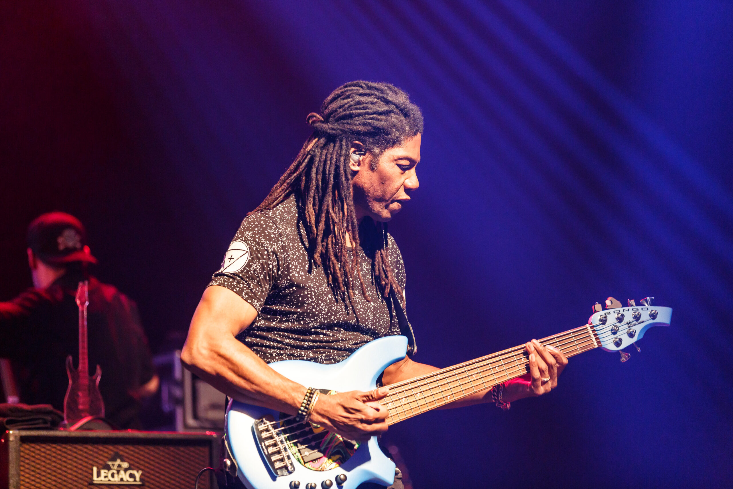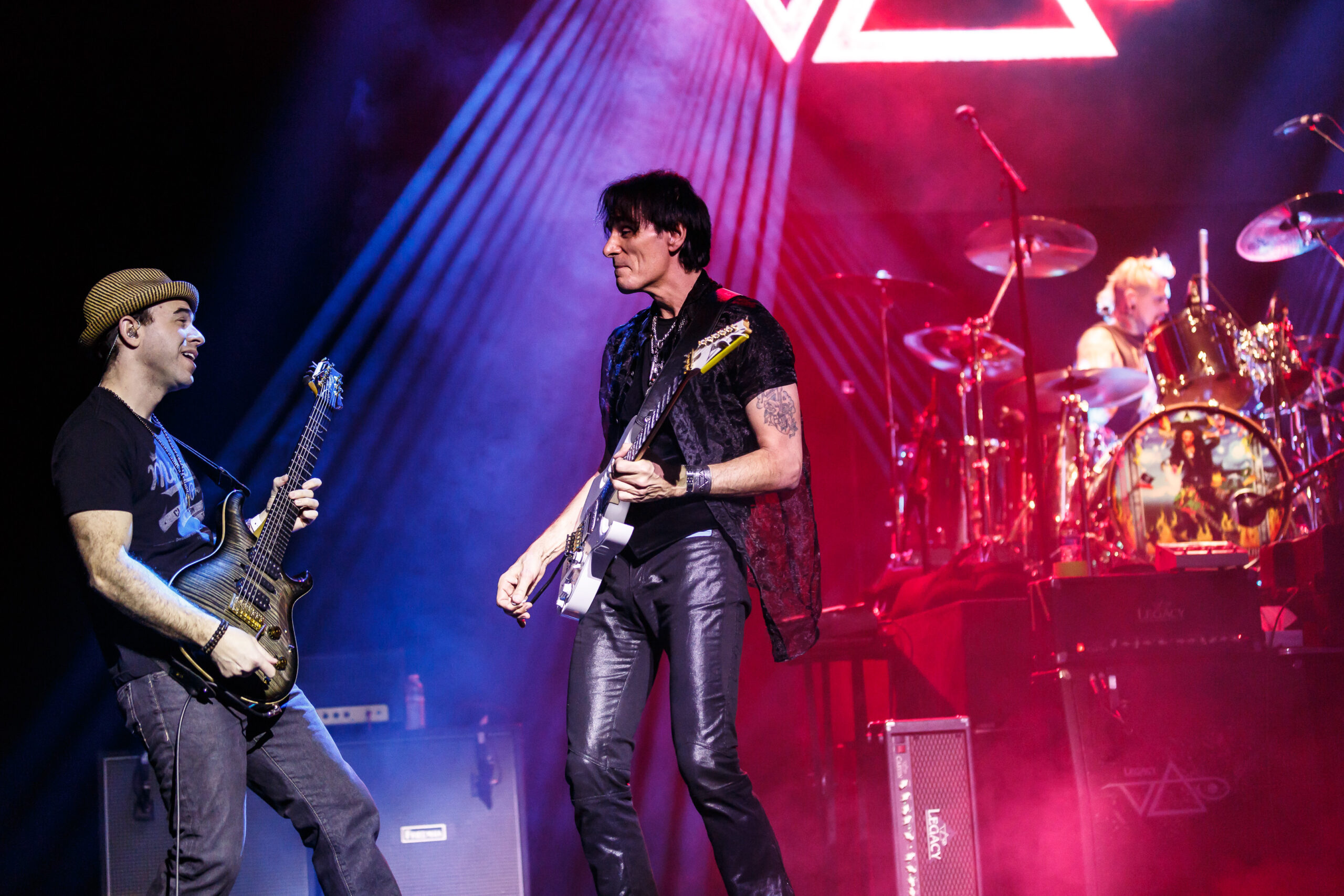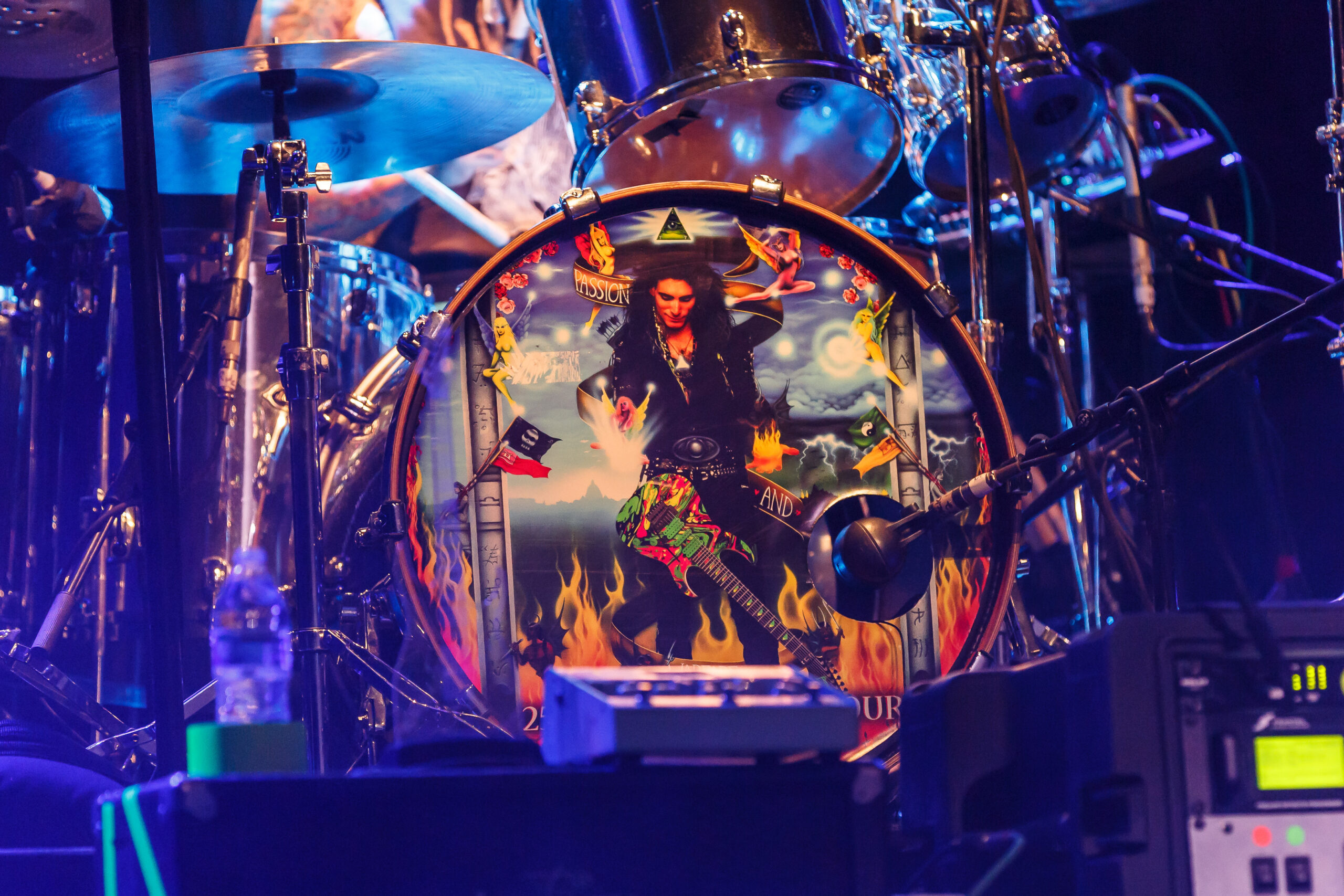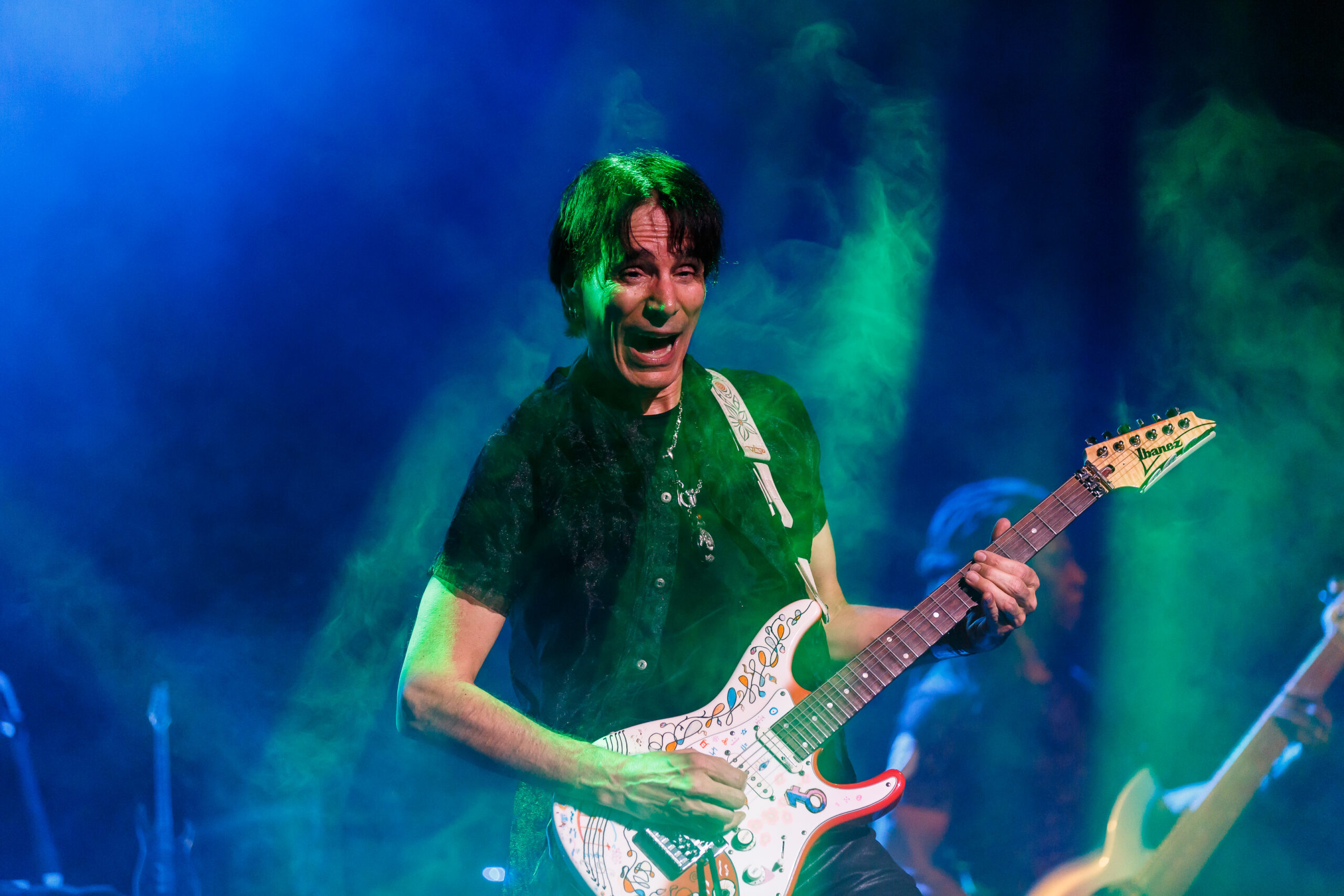 It didn’t take long for the show to get going, as a quick video of Vai’s performance as Satan’s best guitar player in the movie Crossroads kicked off the show into the song “Bad Horsie.”  Draped in a reflective and neon cloak (that shot lasers into the crowd), Vai made his presence known from the very beginning.  With the band quickly joining in, a brief set of songs including “Crying Machine” and “Gravity Storm” would soon lead into the performance, in its entirety, of Passion and Warfare.  It’s here where the special nature of the show truly took shape.