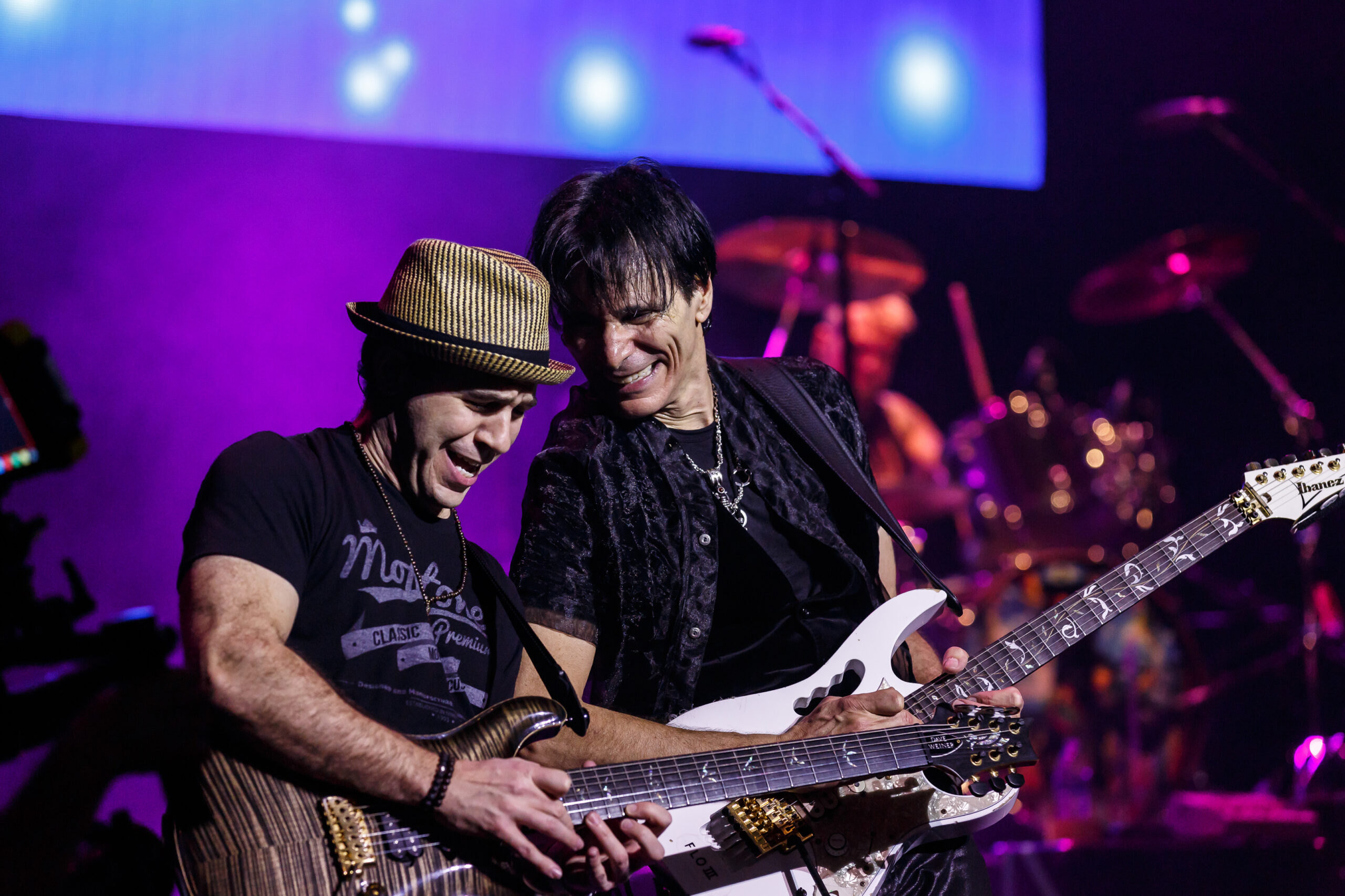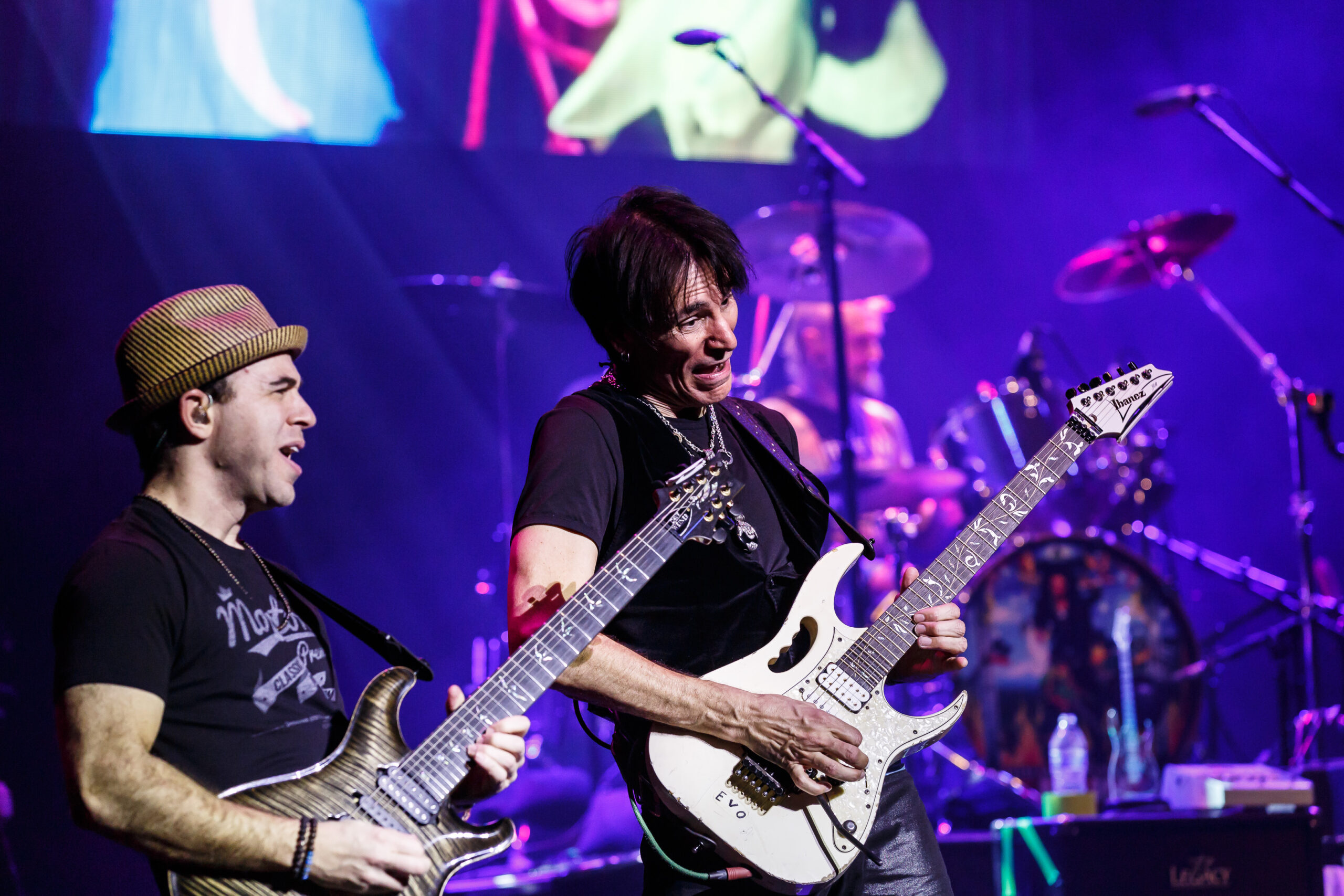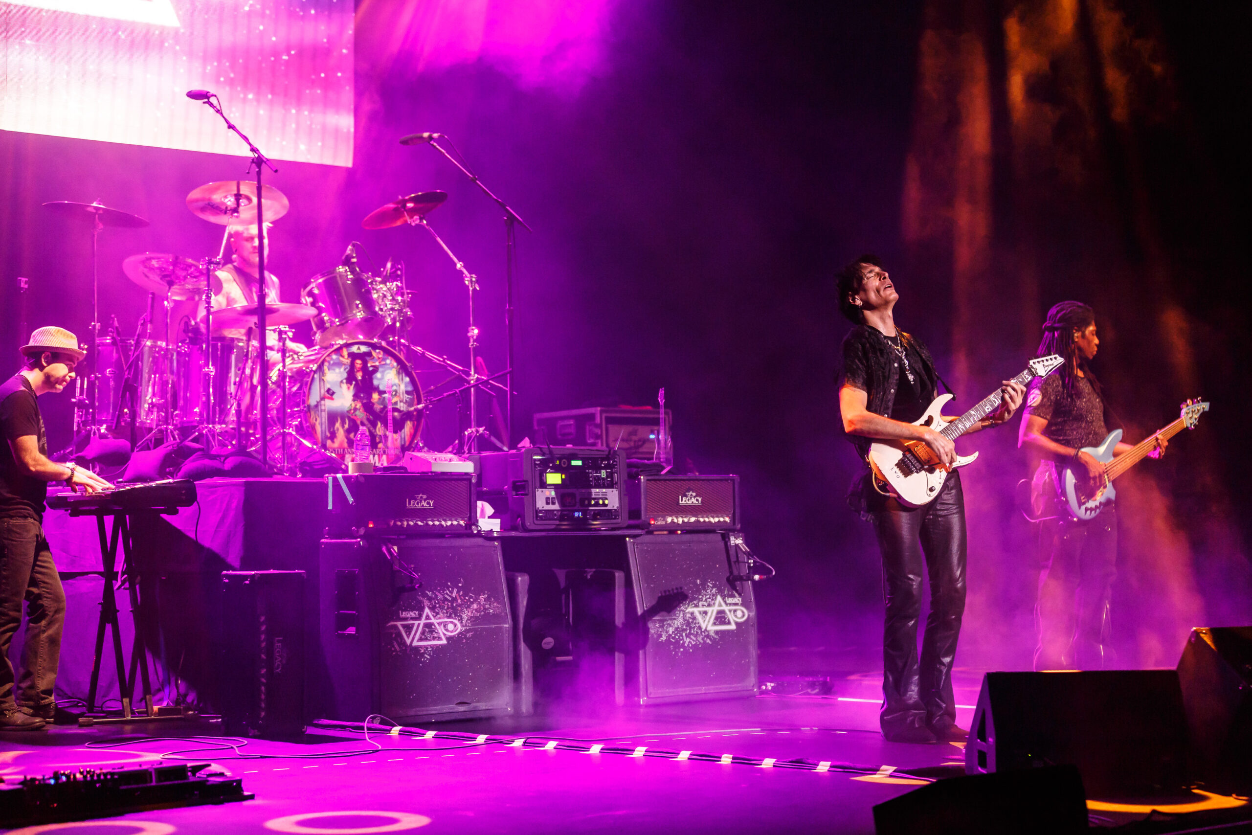 The first song from the album, “Liberty” was performed with an accompanying video and guitar track of Queen guitarist Brian May, which would be the first of many guest appearances throughout the night.  Later, famed guitarists such as Joe Satriani, John Petrucci, and Tommy Emmanuel would also join Vai and his band in pre-recorded video and audio tracks.  After wrapping up the performance of the Passion and Warfare, Vai then, in a touching tribute to the man who discovered him, performed a cover of the song “Stevie’s Spanking” by Frank Zappa accompanied by a video of the late, great musician.