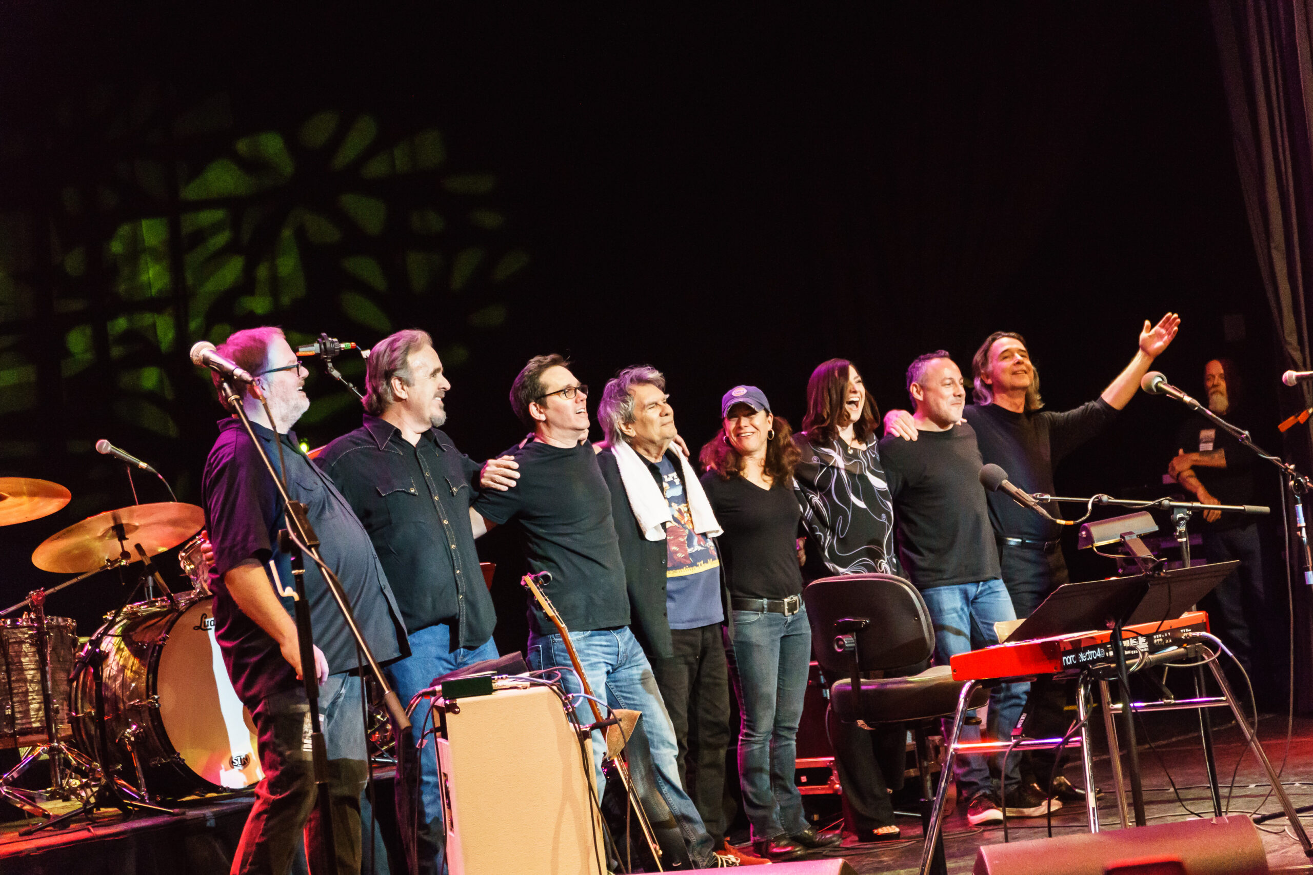 At tonight’s sold out show, Jerry was surrounded on stage by a number of friends.  At the front of the stage from left to right, David Plenn (Lead Guitar and Vocals), Jerry Riopelle (Lead Vocals, Guitar and Keyboards), Llory McDonald (Guitar and Vocals) and Tara Austin (Vocals).  At the back of the stage from left to right, Jerry’s son, Paul Riopelle (Vocals and Guitar), David Jenkins (Percussion), David Goodstein (Drums) and Lloyd Moffitt (Bass).