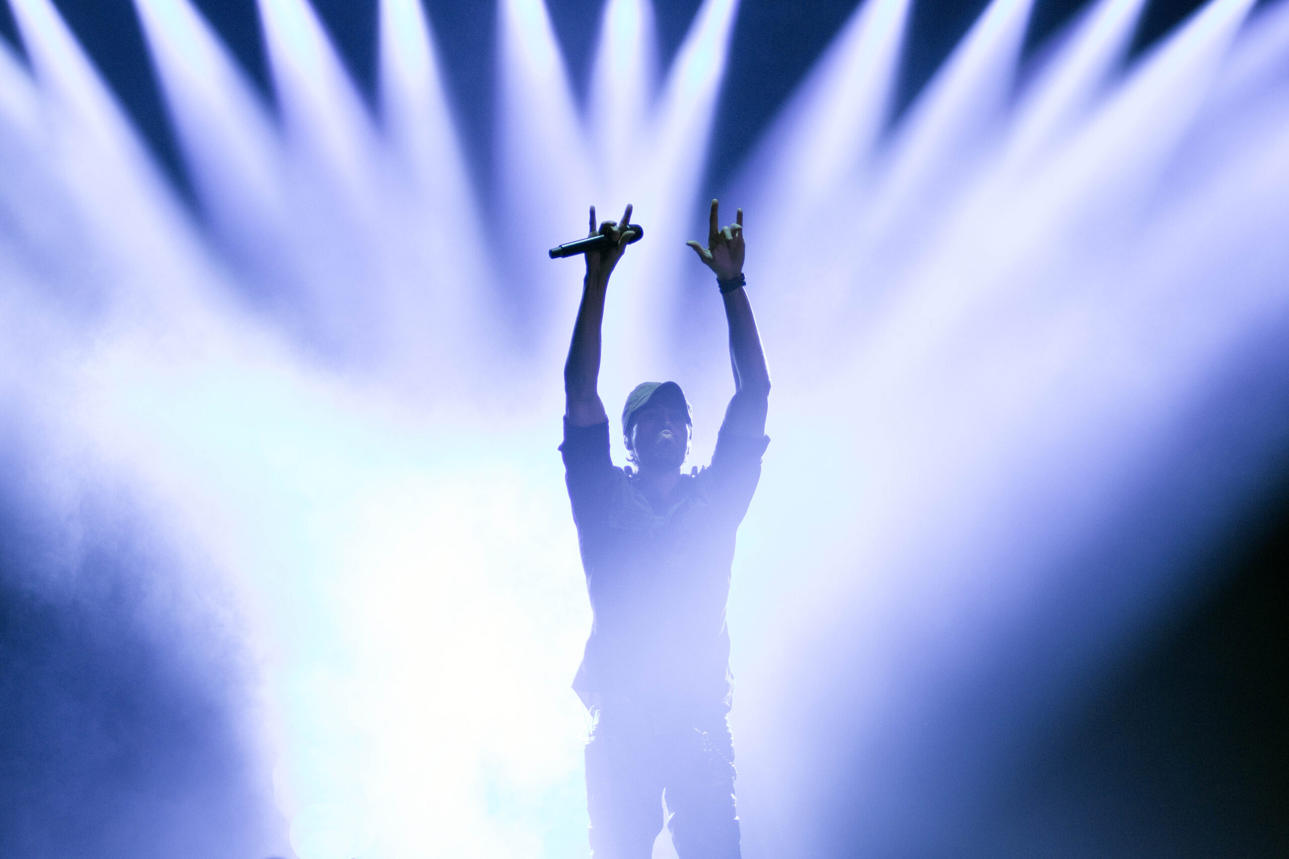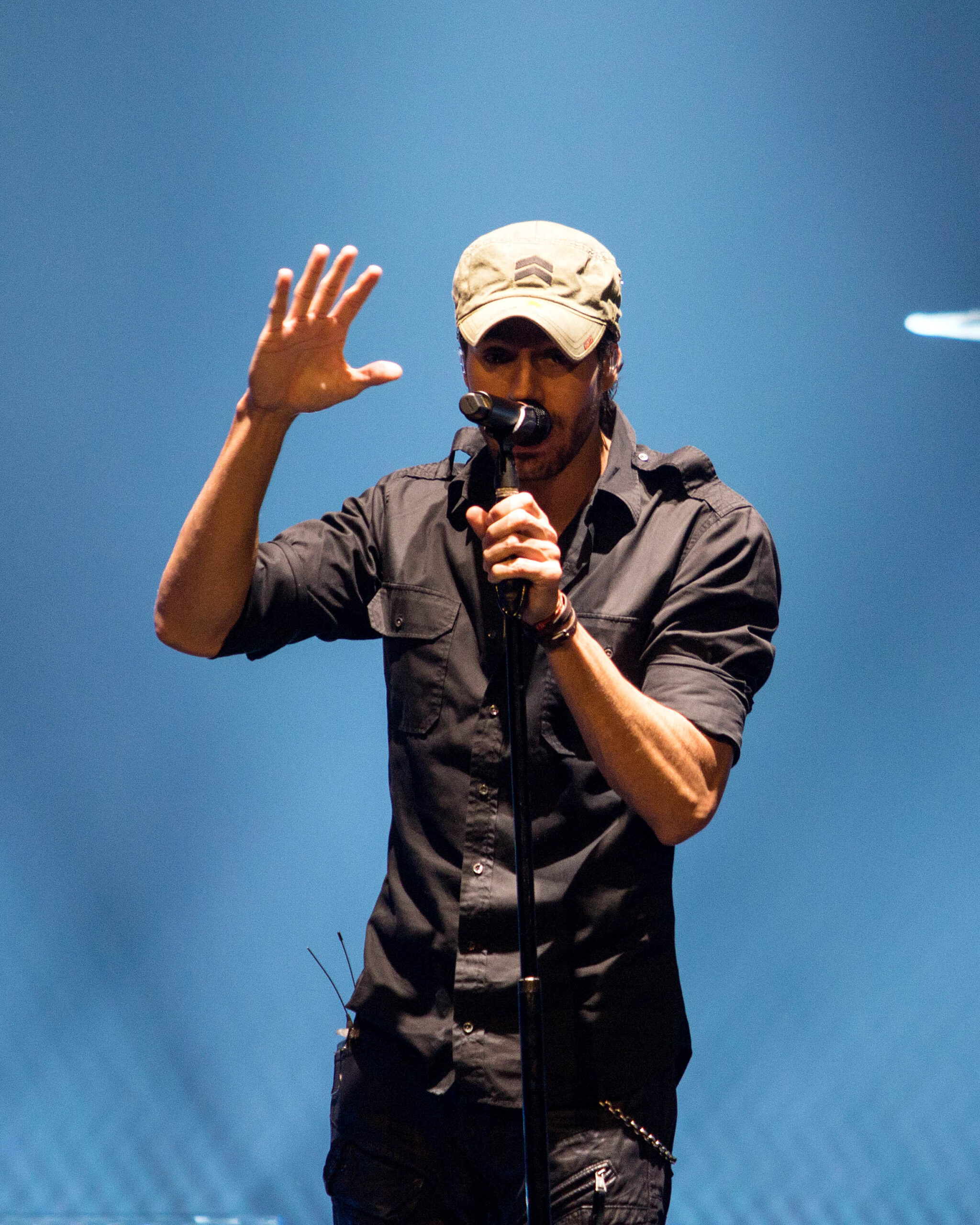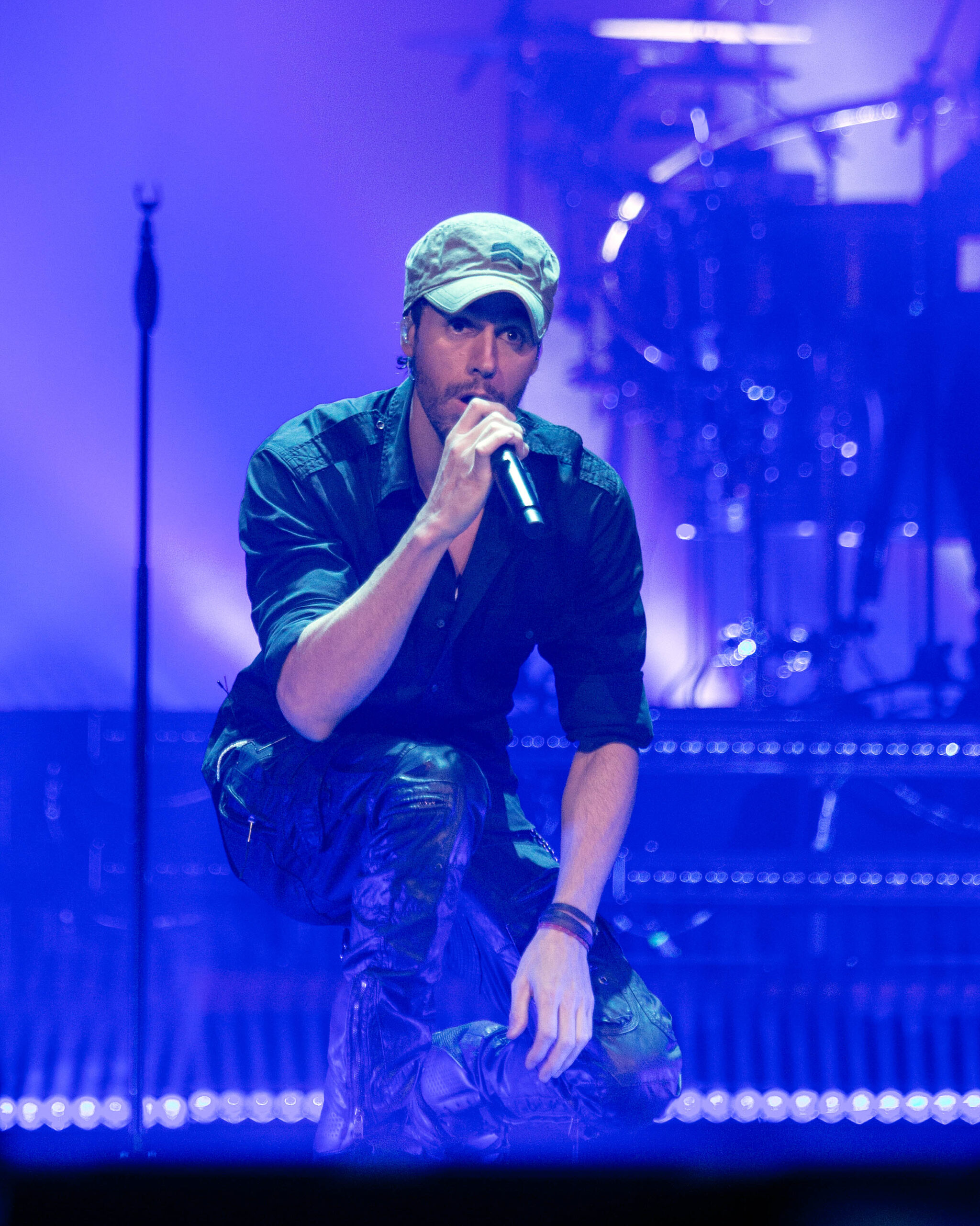 Iglesias’ staging was about as cool as I’ve seen, with a runway jutting out from the front of the stage halfway across the arena. Iglesias rose from the beneath the stage at the end of the runway, in the middle of the arena, to open the show. While the runway is fairly common, the moving sidewalk/conveyor belt running down the middle of it isn’t. Iglesias used it to great effect, running half way down the runway and surfing back to the front of the stage on the moving sidewalk. Finally, he had a second stage on the opposite side of the floor above the sound booth where he and several of his musicians performed an acoustic mini-set.