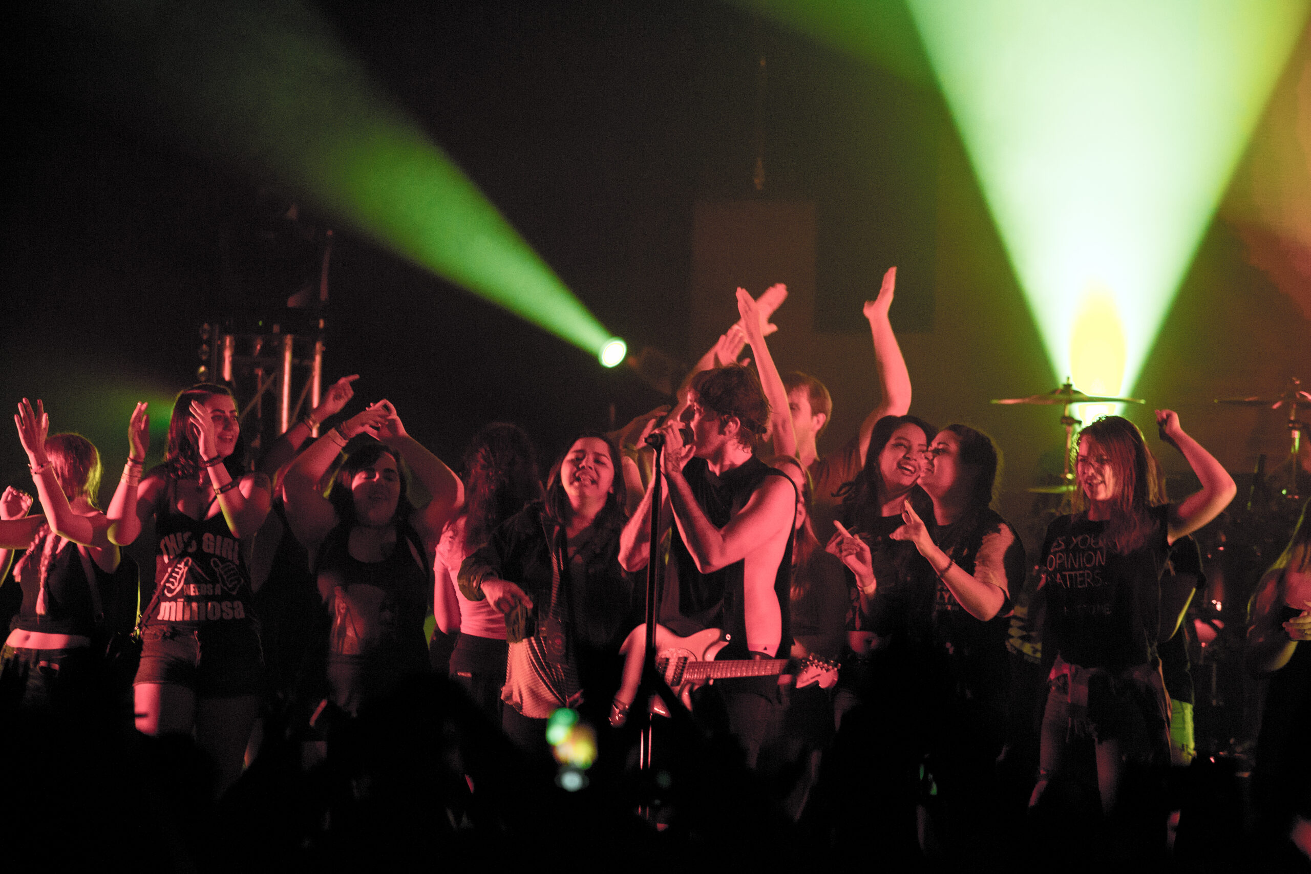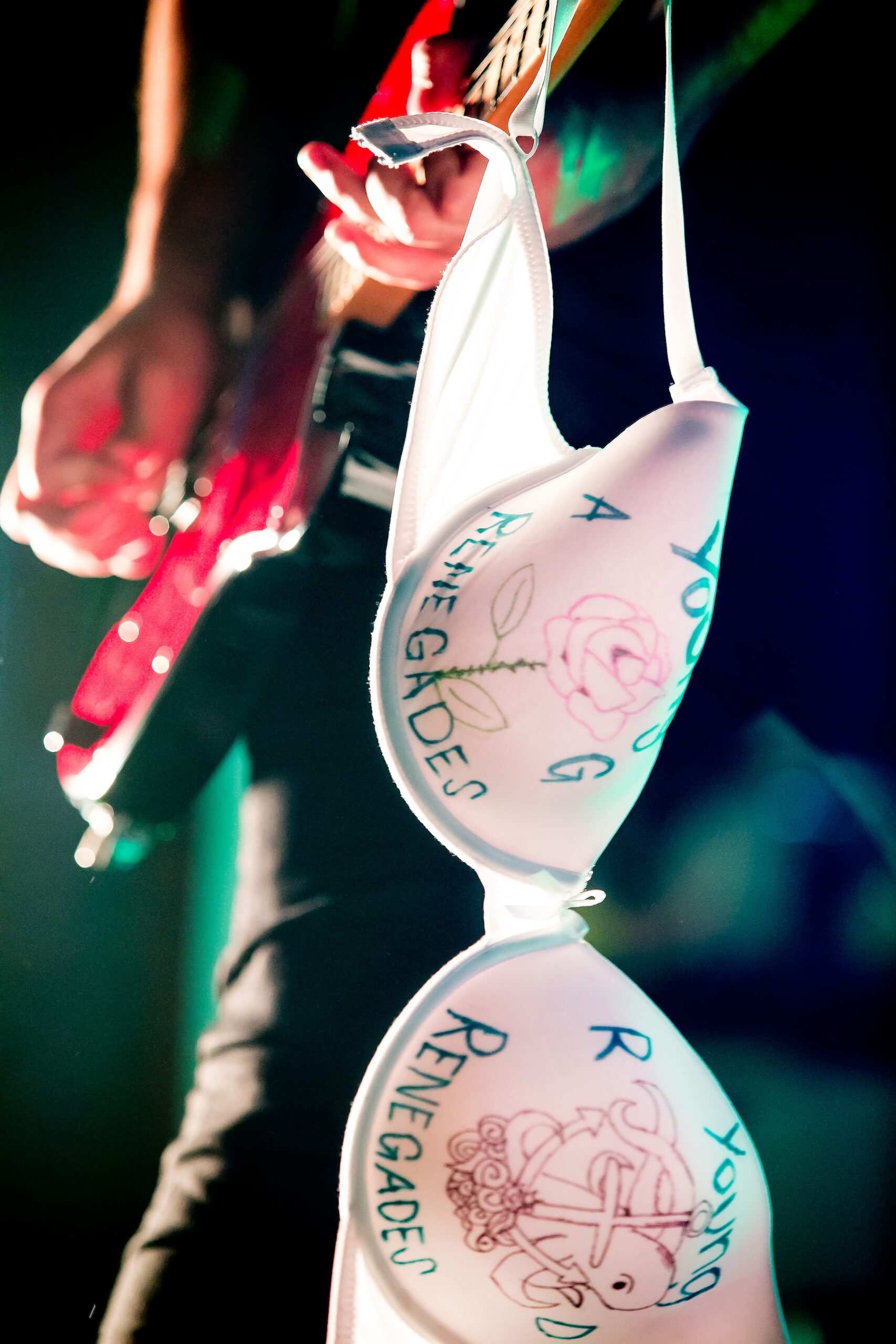 - A whole lot of young women (presumably) throw their lingerie onto the stage during the concert, some of it with artwork and some of it with apparent invitations and phone numbers.