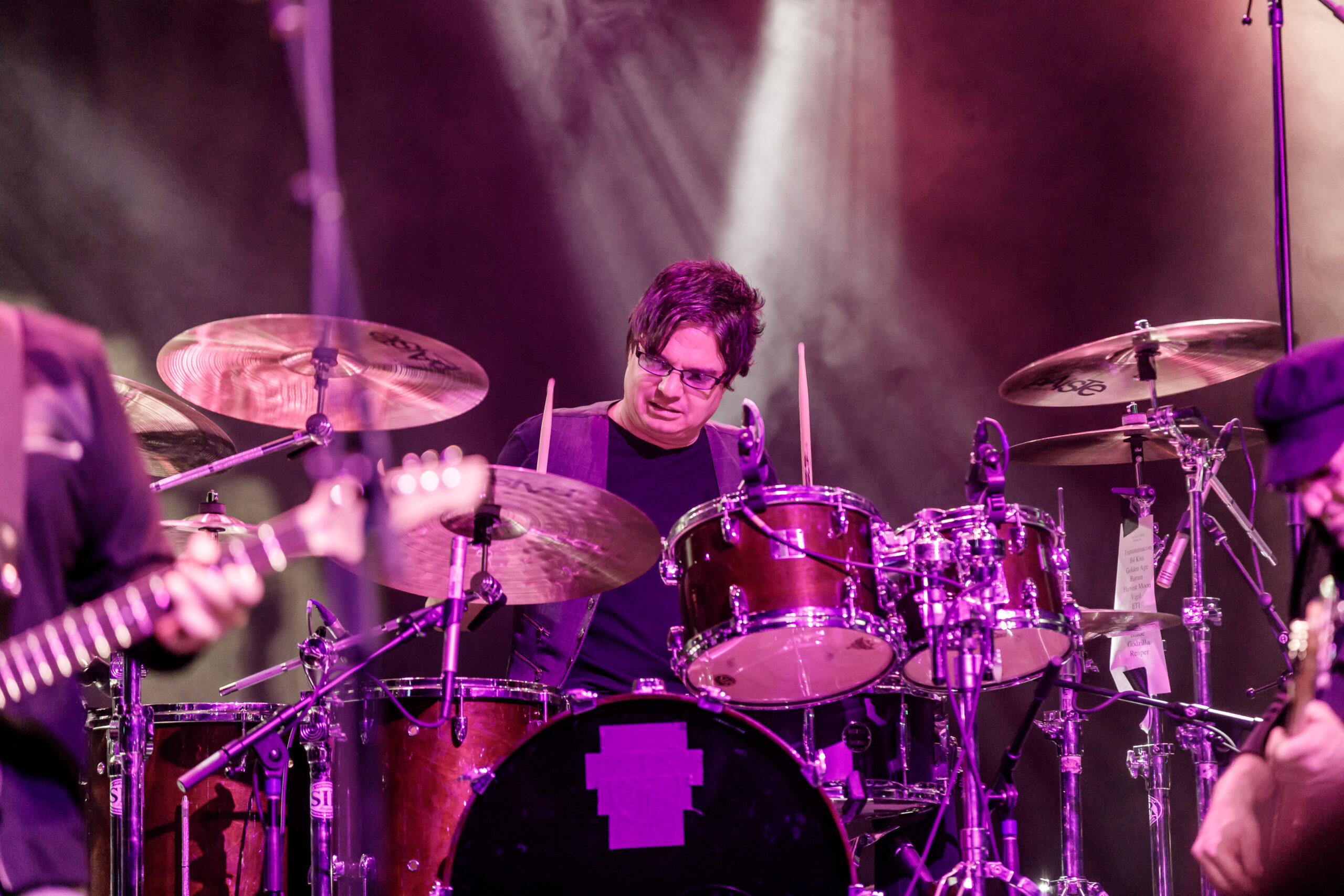A first for me was seeing Buck playing a headless guitar.  I have seen a headless bass before, but this was the first time I saw someone playing a 6-string headless guitar.  Buck had this beautiful Kiesel 6-string headless guitar that he played for most of the show.  At the end of the show he changed over to another headless guitar, his signature white Steinberger “Cheese”berger guitar.  If you have never seen or heard one of these headless guitars, they sound amazing.  Too bad they don’t sell a kit version of it, I would love to build one.