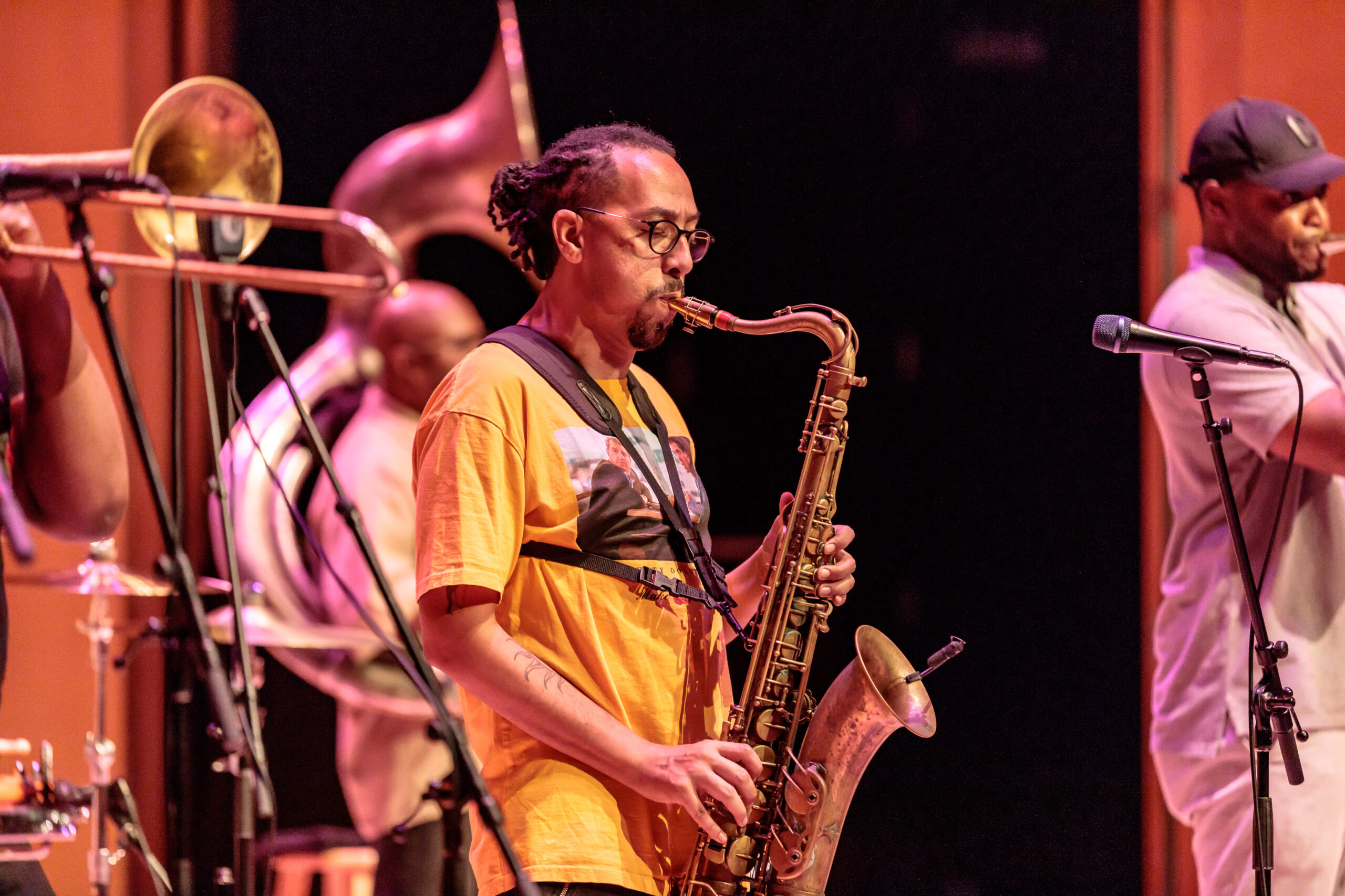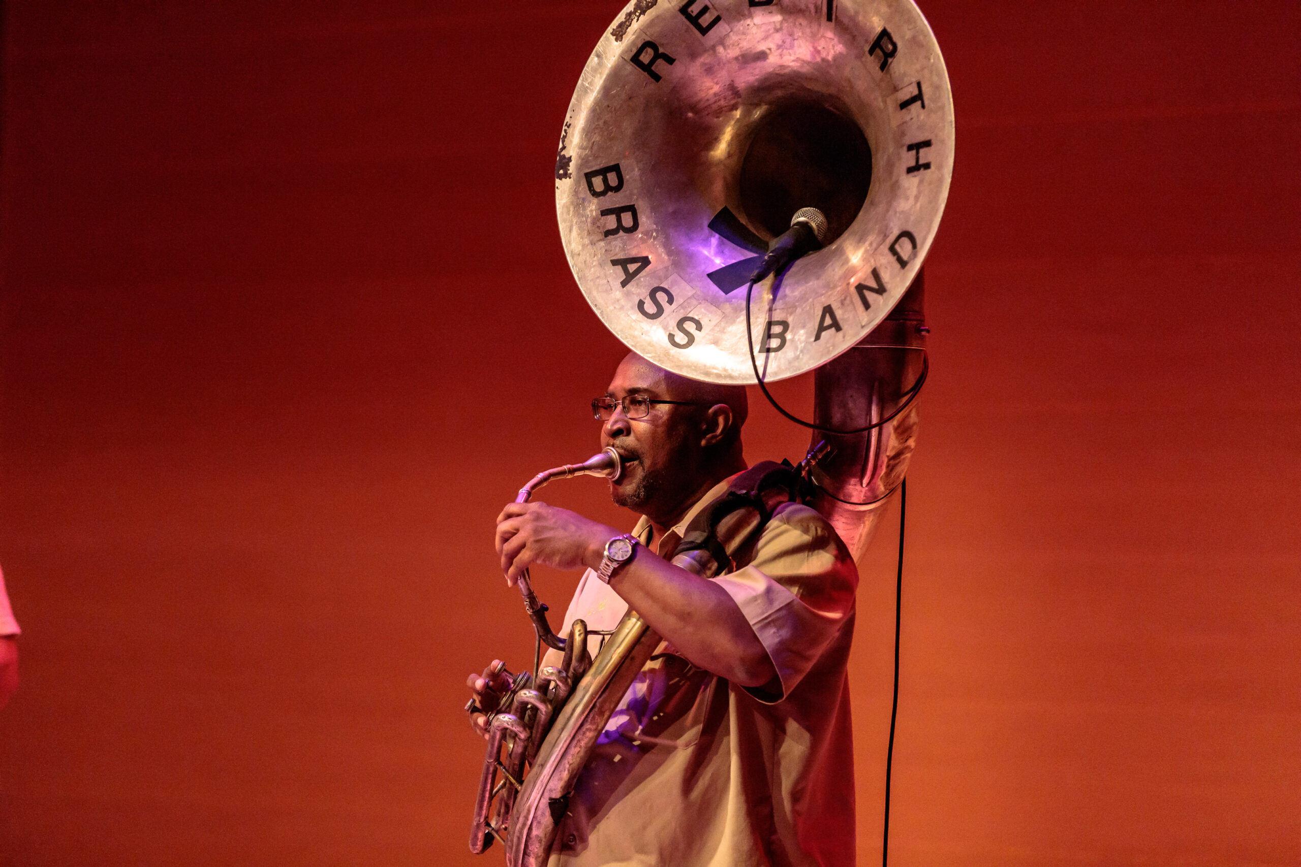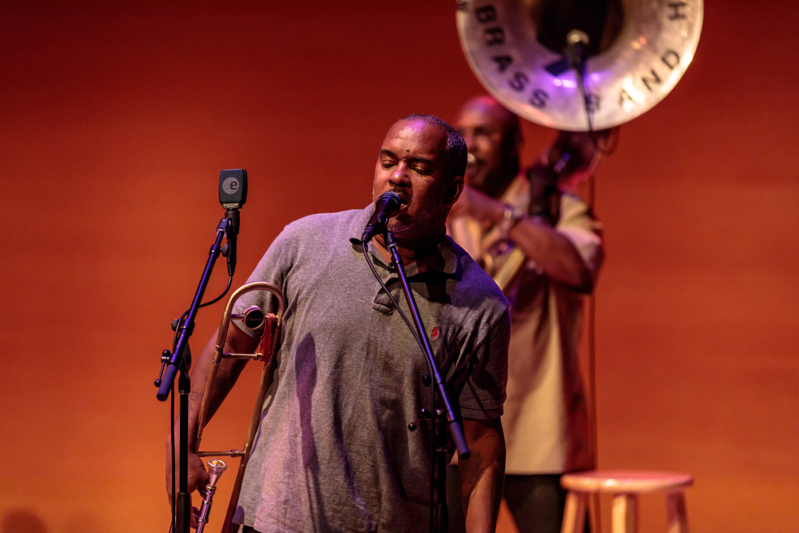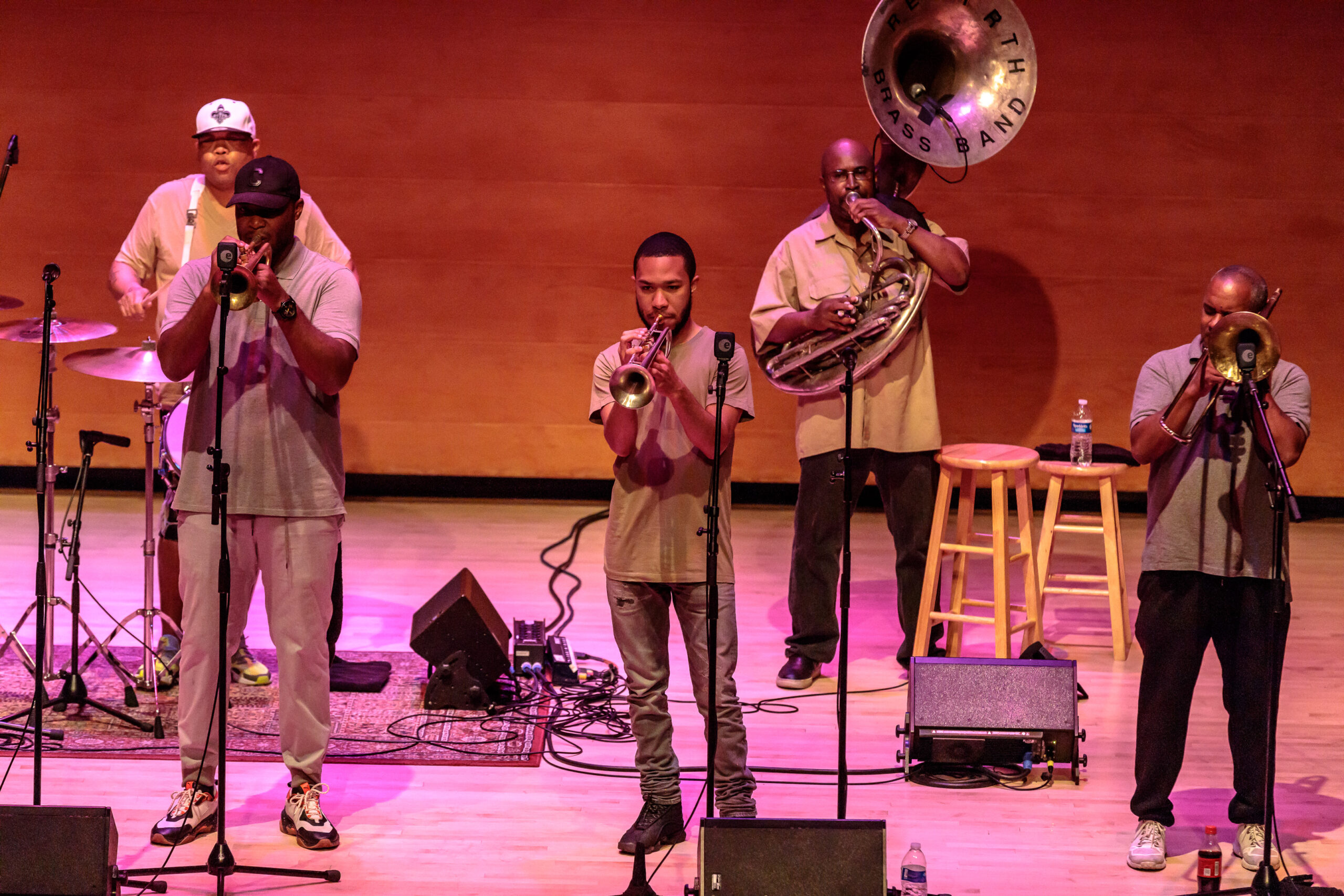 The band was started by the Frazier bothers and over the years many members have come and gone from the group. For tonight’s performance the band was made up of: Phil Frazier on tuba, Keith Frazier on bass drum, Ajay Mallery on snare drum, Vincent Broussard on saxophone, Glenn Hall and Chadrick Honroe on trumpet and Stafford Agee and Gregory Veals on trombone. From the very beginning you could tell that the band was having fun and that translated to the audience. Multiple times throughout the show, the audience applauded the band between songs. The show was broken up into 2 parts with a short intermission.