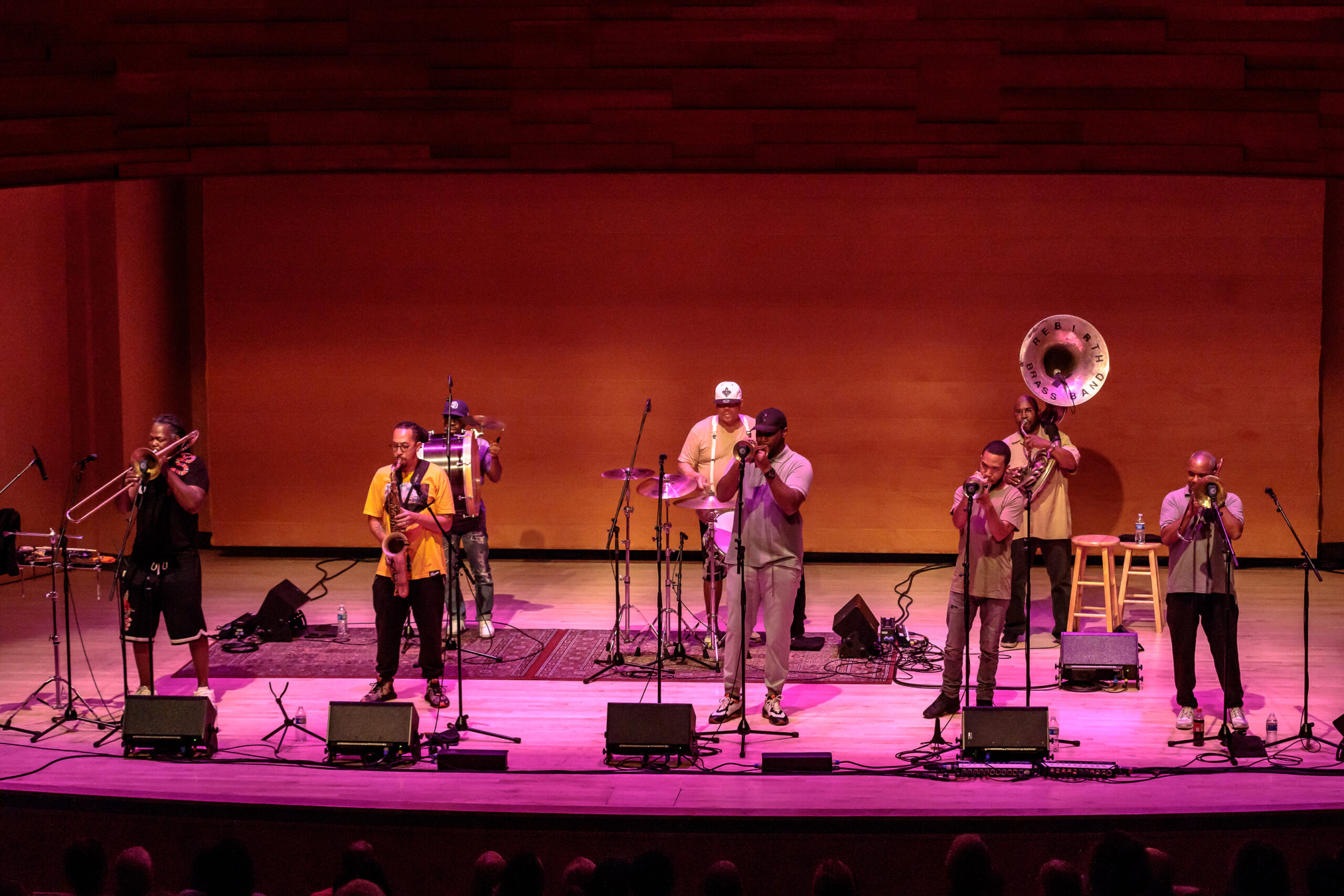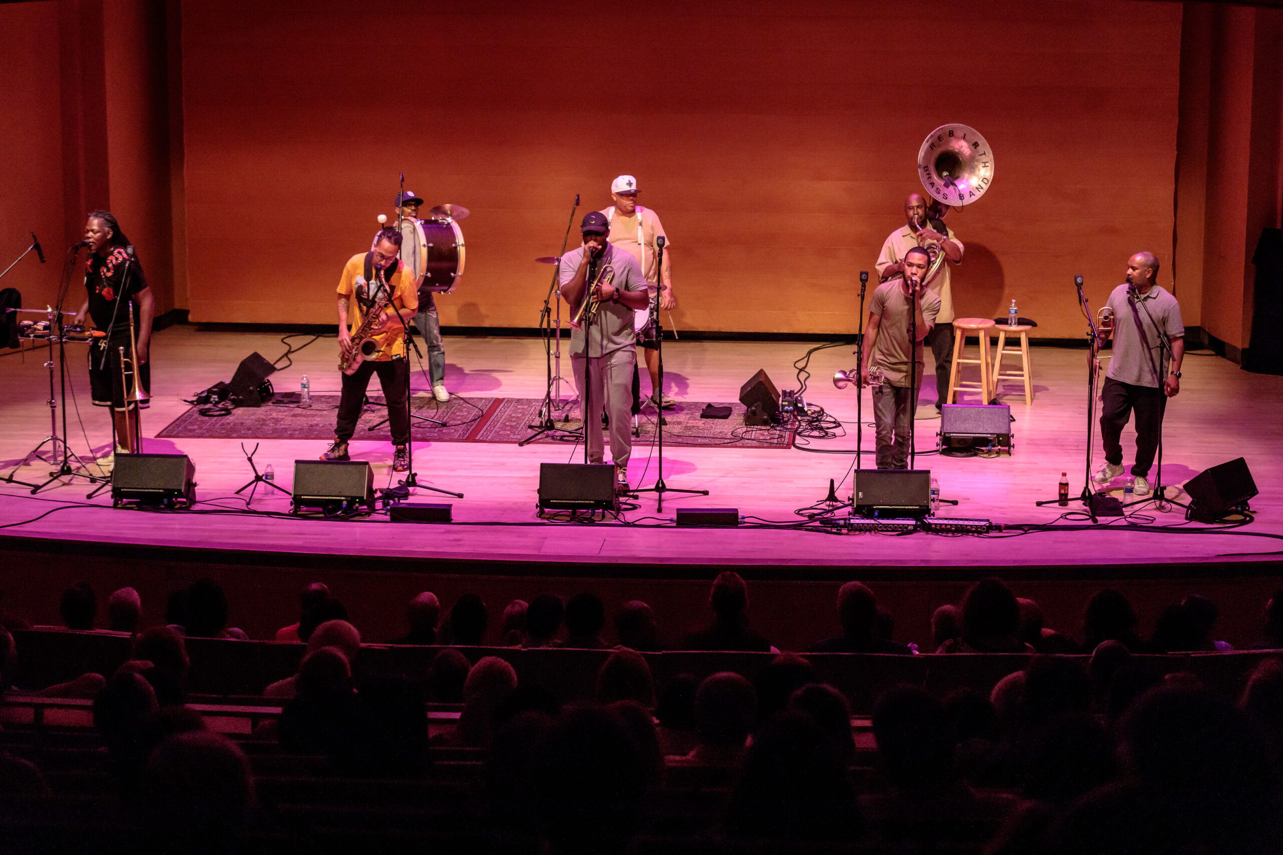 Just like Rock and Roll, Jazz has many flavors. The Rebirth Brass Band has an Americana style of jazz with overtones coming from the New Orleans streets that adds funk and hip hop to their sound. This is a fun and happy style of jazz that wants the audience to get up and dance. At multiple times during the show, audience members would get up and dance and some even moved to the side of the auditorium to dance. By the end of the show, the band had everyone up and dancing. You can always tell that band had a good show when the audience really gets into it.