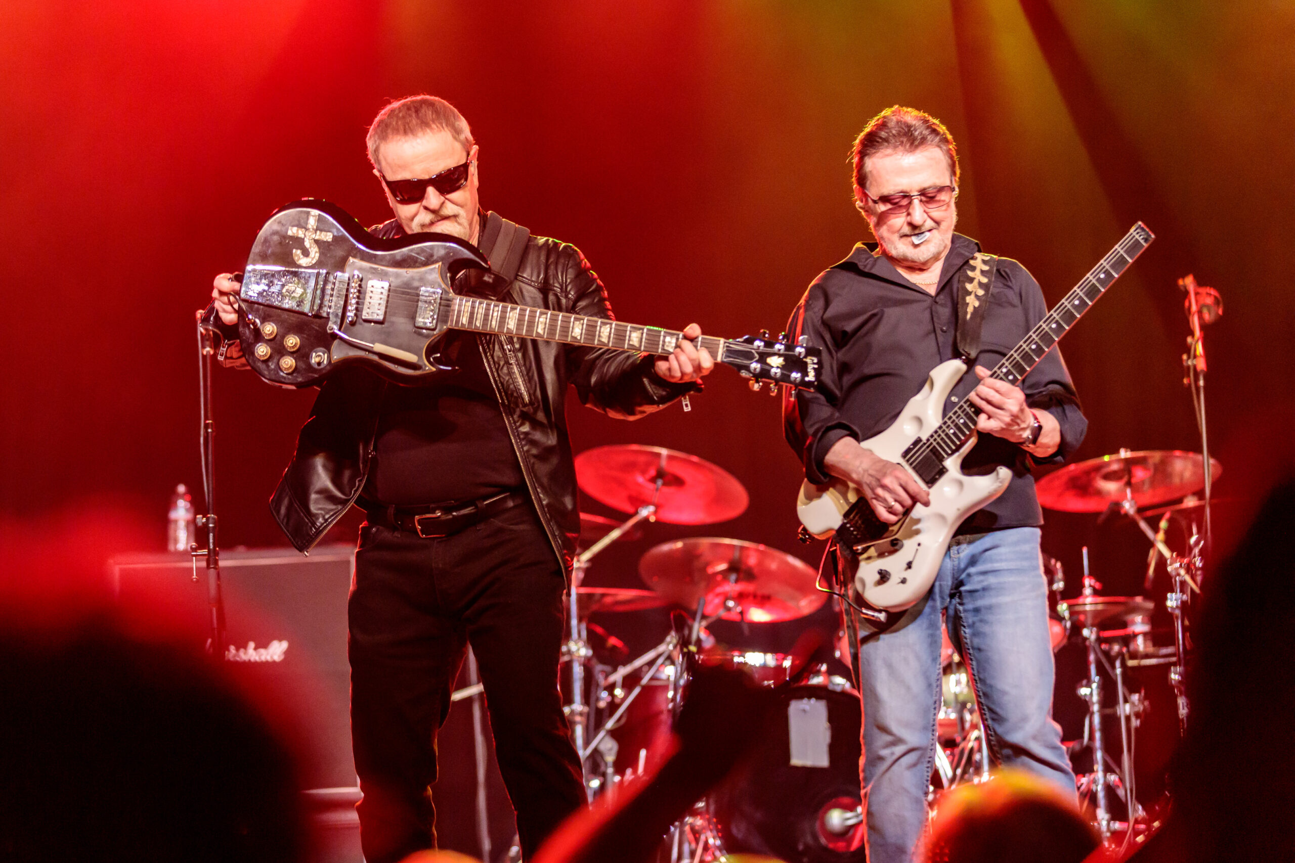 Eric Bloom and Buck Dharma were joined on stage by guitarist/keyboardist Richie Castellano, bass player Danny Miranda and drummer Jules Radino. At one point in the show, Buck asked what the next song should be and the crowd shouted out “Shooting Sharks”. The end of the main set consisted of 2 of the BOC’s greatest hits, “Godzilla” and finally “(Don’t Fear) The Reaper”. Unlike prior shows, Eric did not play the cowbell at the start of “The Reaper”. After a short break, they came back on stage for a 3-song encore that included “Tattoo Vampire”, “I Love the Night” and ended the show with “Cities on Flame With Rock and Roll”.