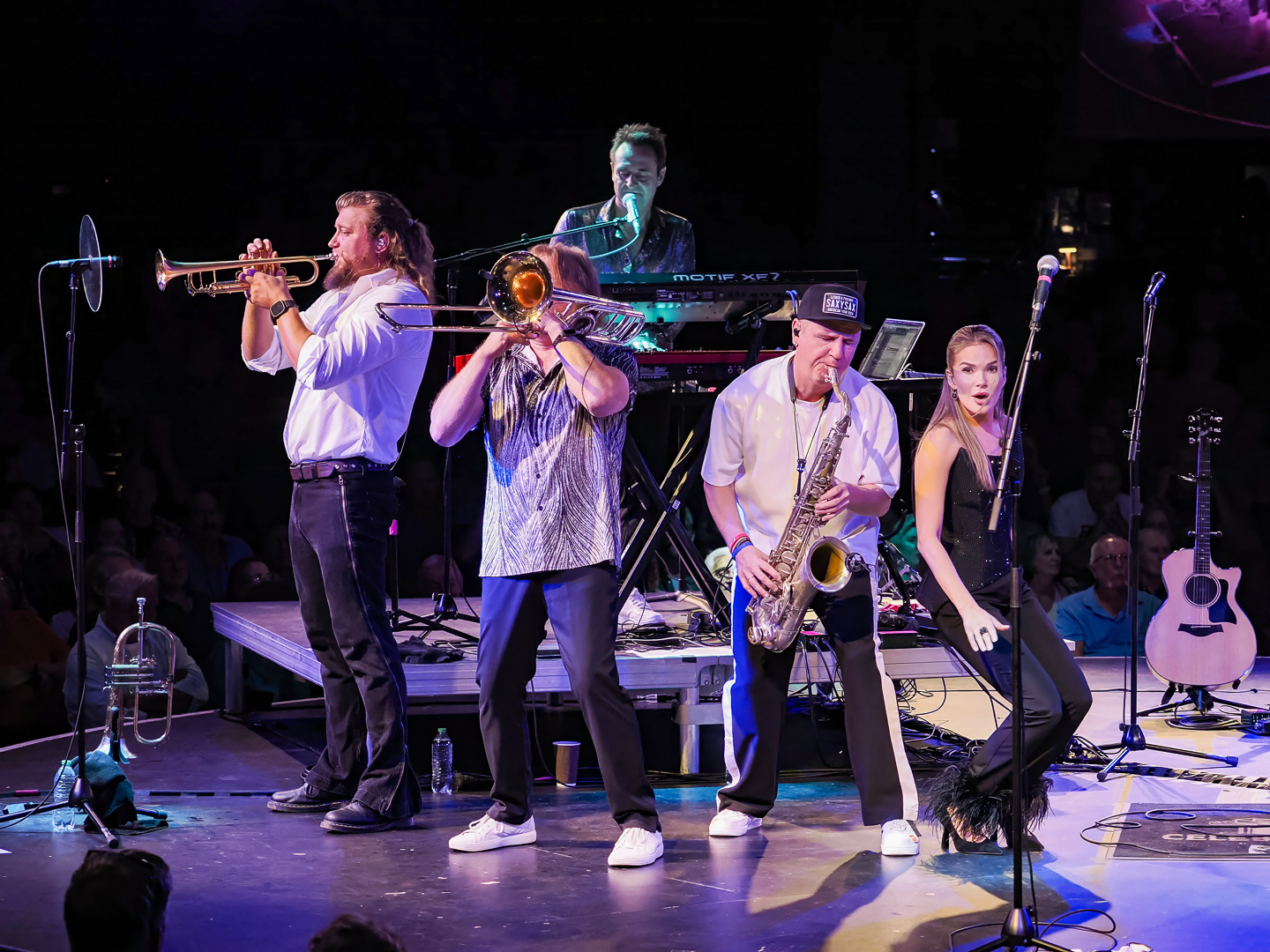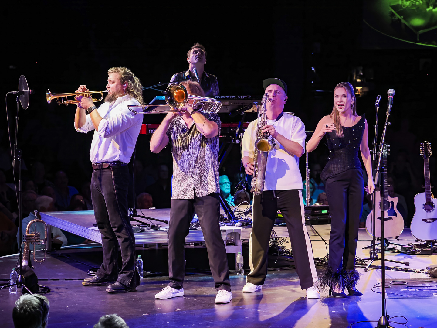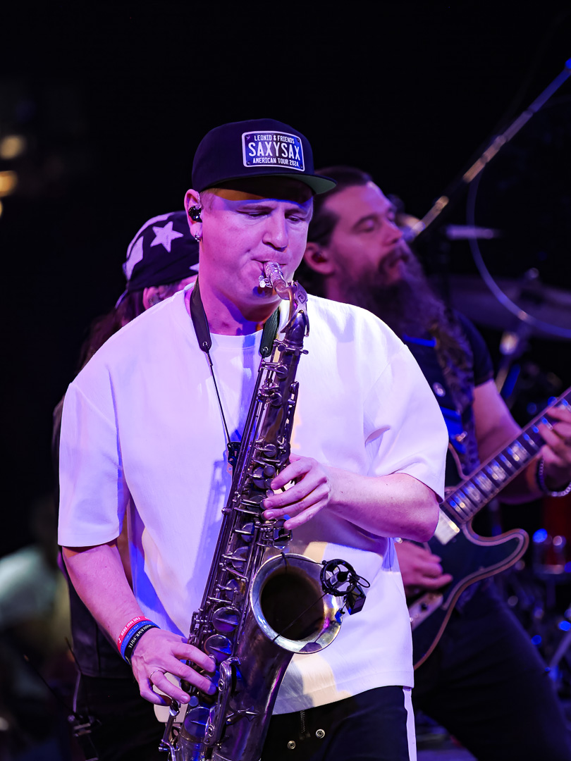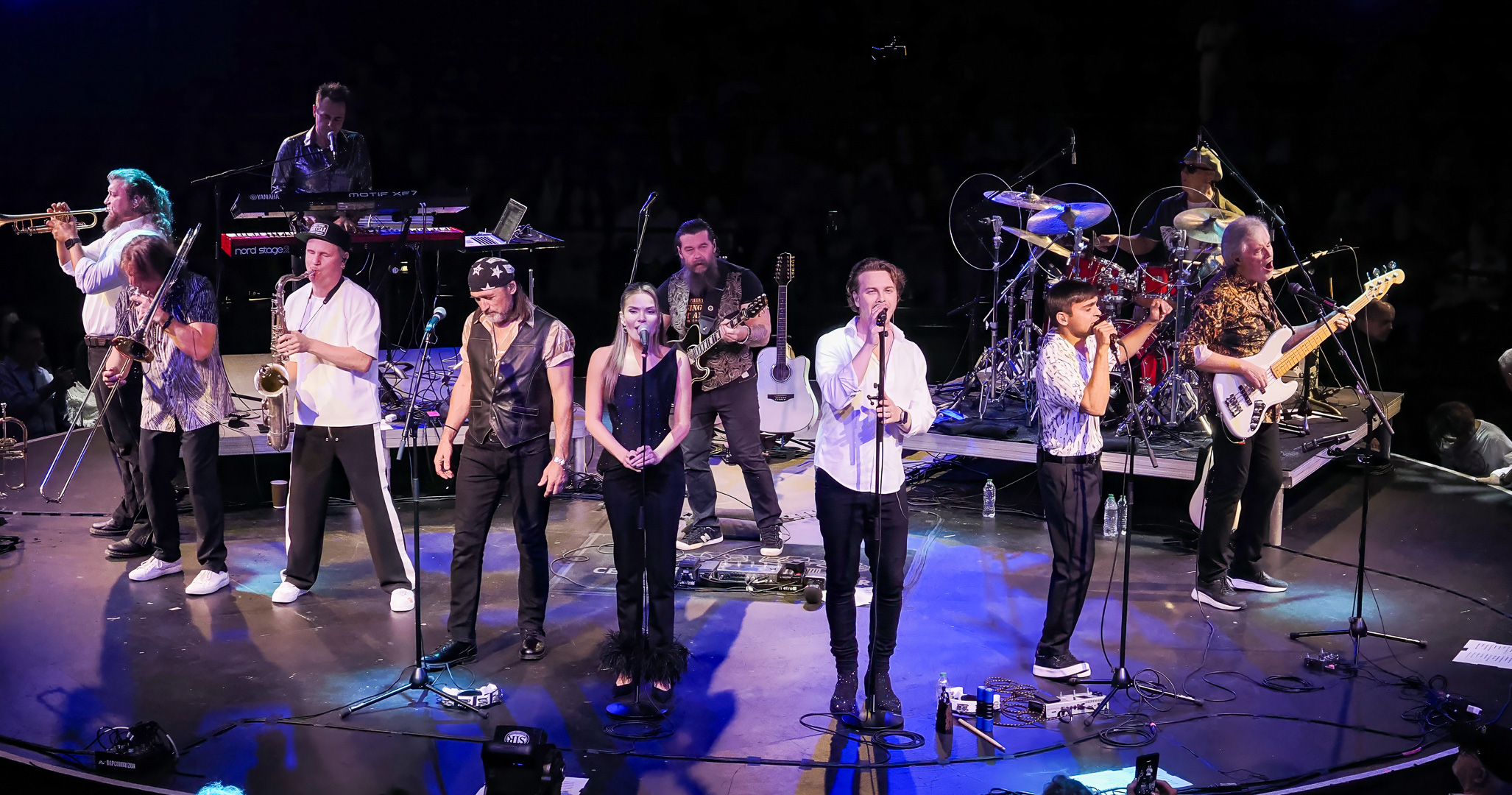 Like Chicago and Earth Wind & Fire, Leonid & Friends have a large number of members.  Leonid Vorobyev is the founding member of the band and he plays bass guitar.  The 3-piece horn section consists of Andrey Zyl, Oleg Kudryavtsev and Maxim Likhachev.  They also have 4 vocalists; Mikhail Puntov, Danil Buranov, Vasily Akimov and Ksenia Buzina.  The musicians include guitarist Konstantin Kovachev, drummer Igor Javad-Zade and keyboardist Sergey Kurmaev.  As you can see, they filled the stage at the Celebrity Theatre.