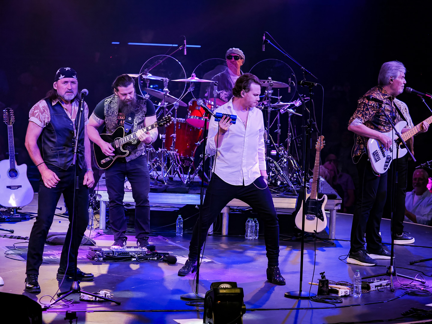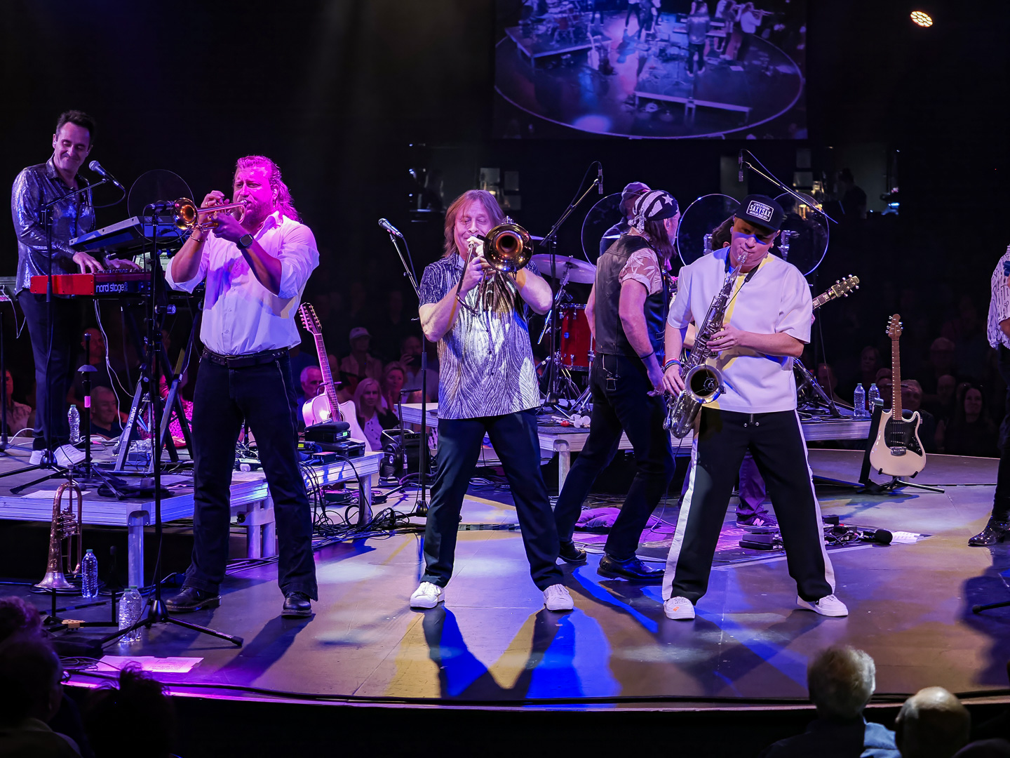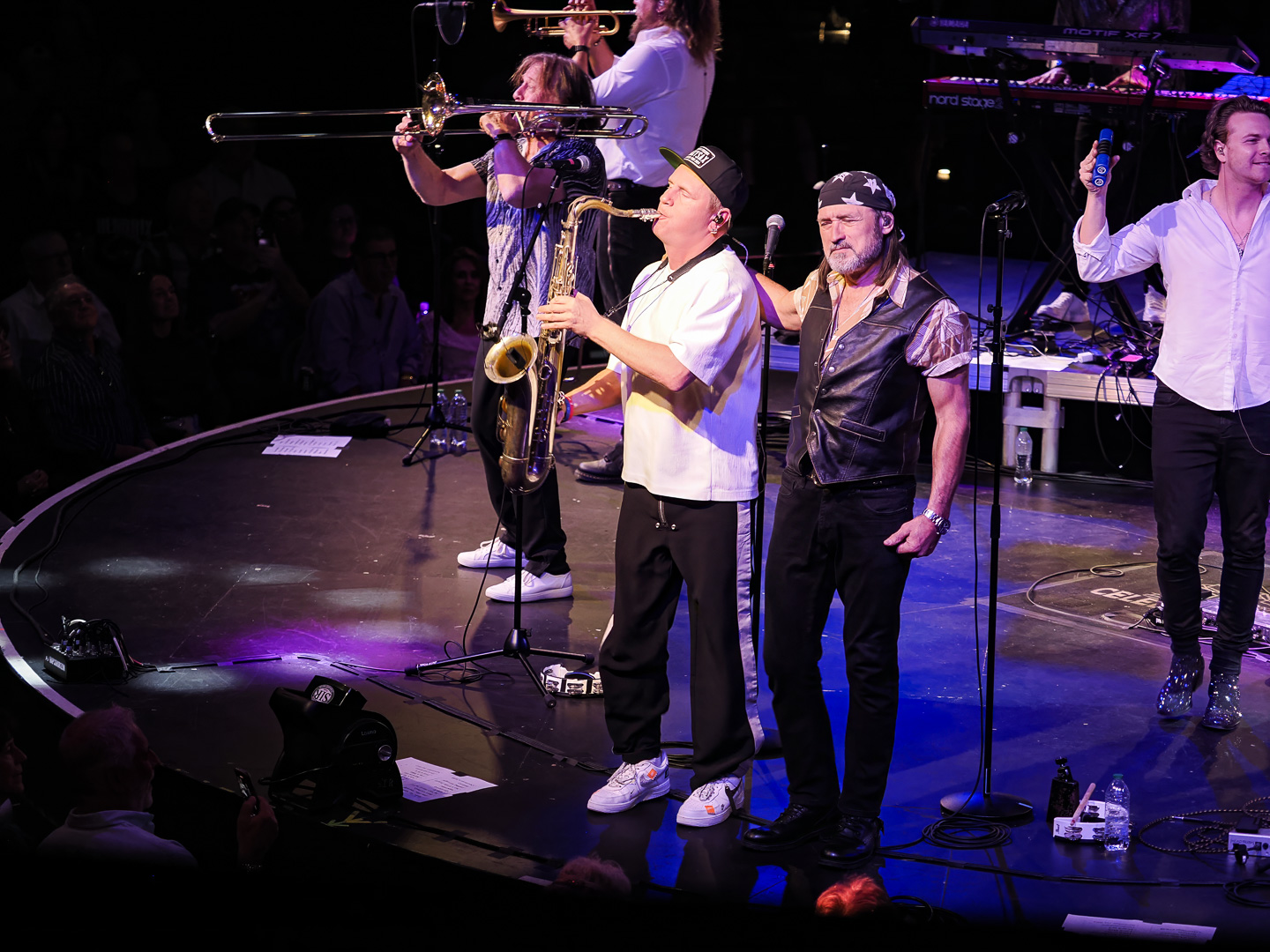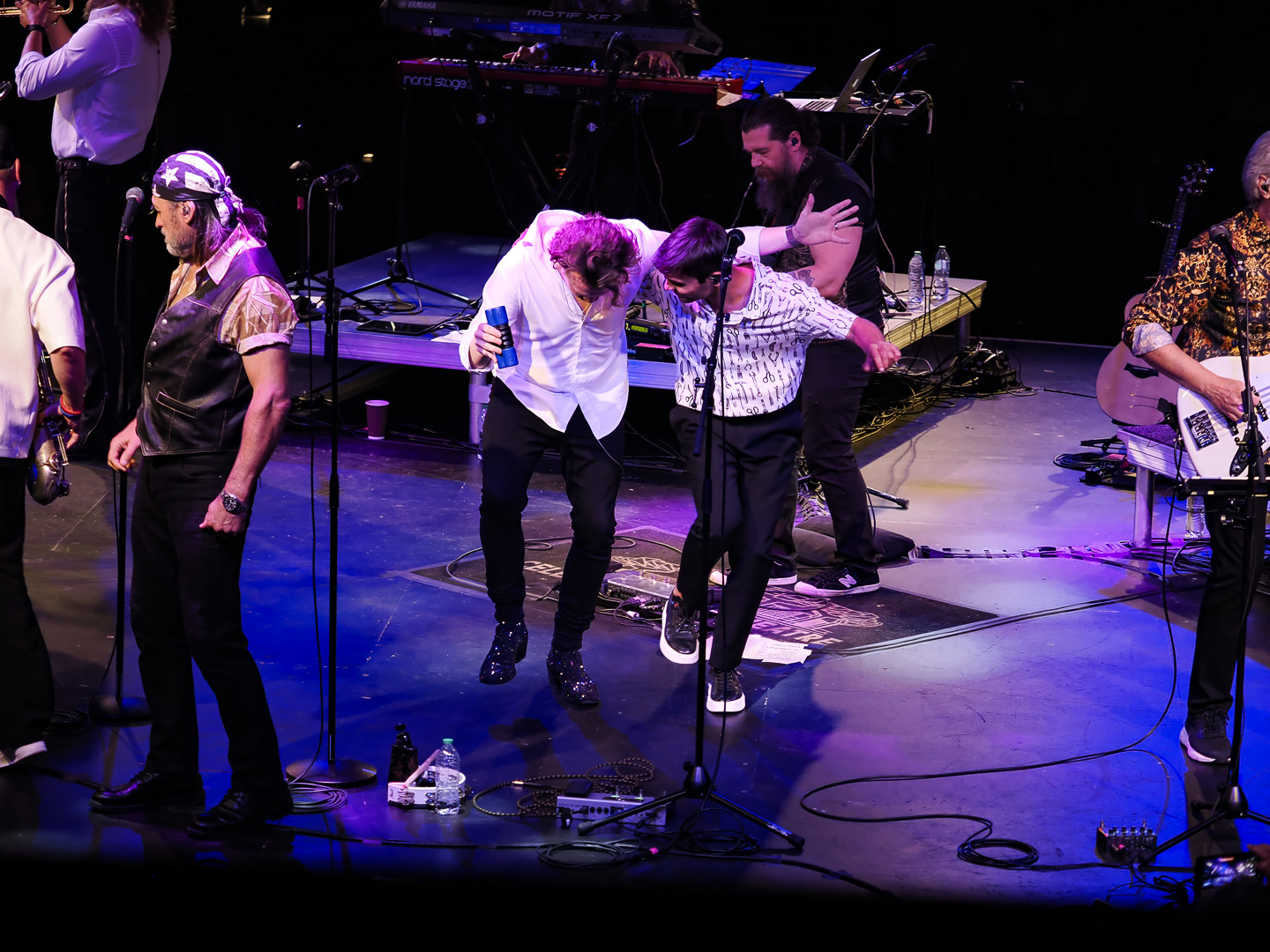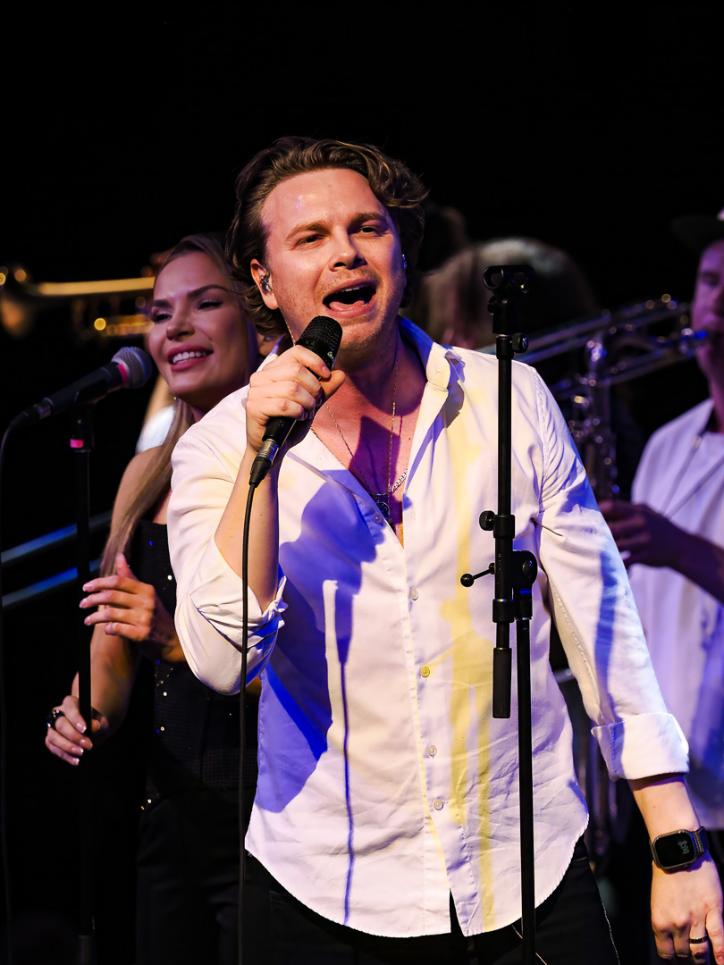 Like Chicago and Earth Wind & Fire, Leonid & Friends have a large number of members.  Leonid Vorobyev is the founding member of the band and he plays bass guitar.  The 3-piece horn section consists of Andrey Zyl, Oleg Kudryavtsev and Maxim Likhachev.  They also have 4 vocalists; Mikhail Puntov, Danil Buranov, Vasily Akimov and Ksenia Buzina.  The musicians include guitarist Konstantin Kovachev, drummer Igor Javad-Zade and keyboardist Sergey Kurmaev.  As you can see, they filled the stage at the Celebrity Theatre.