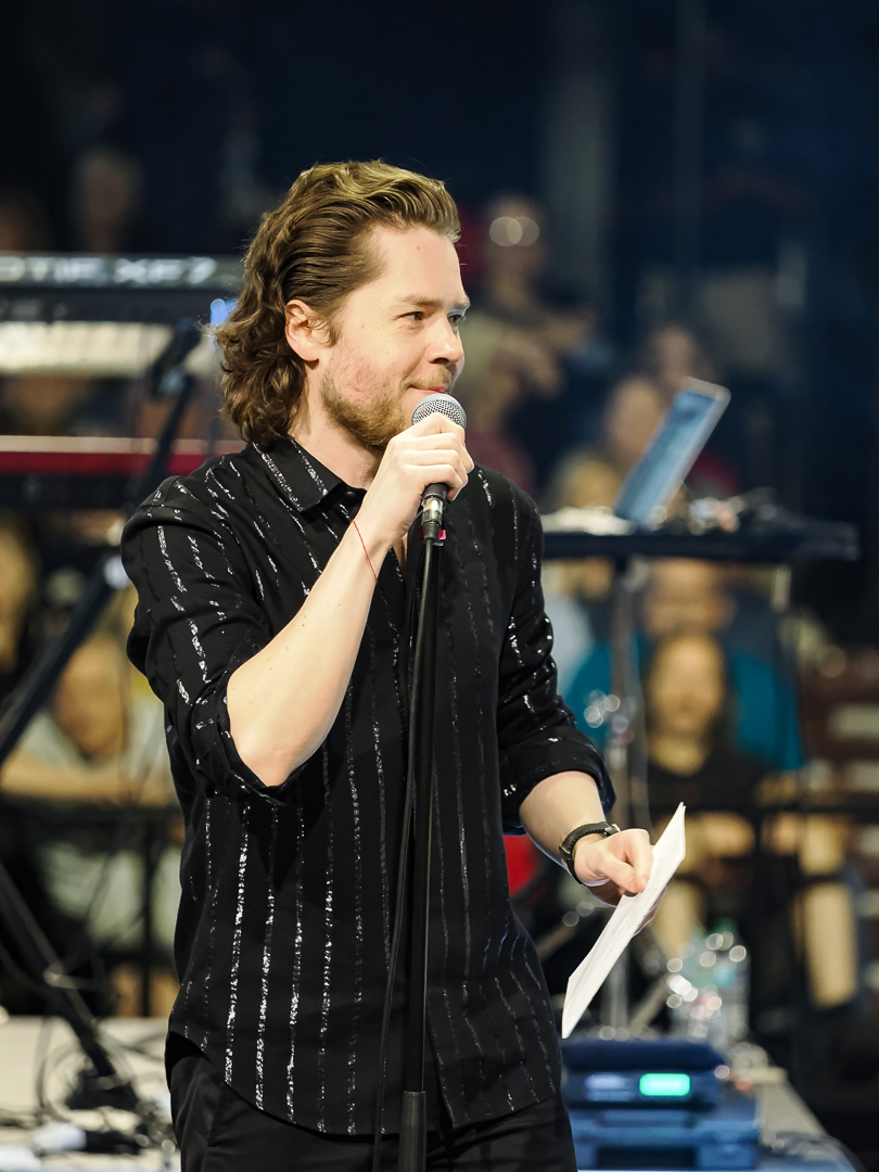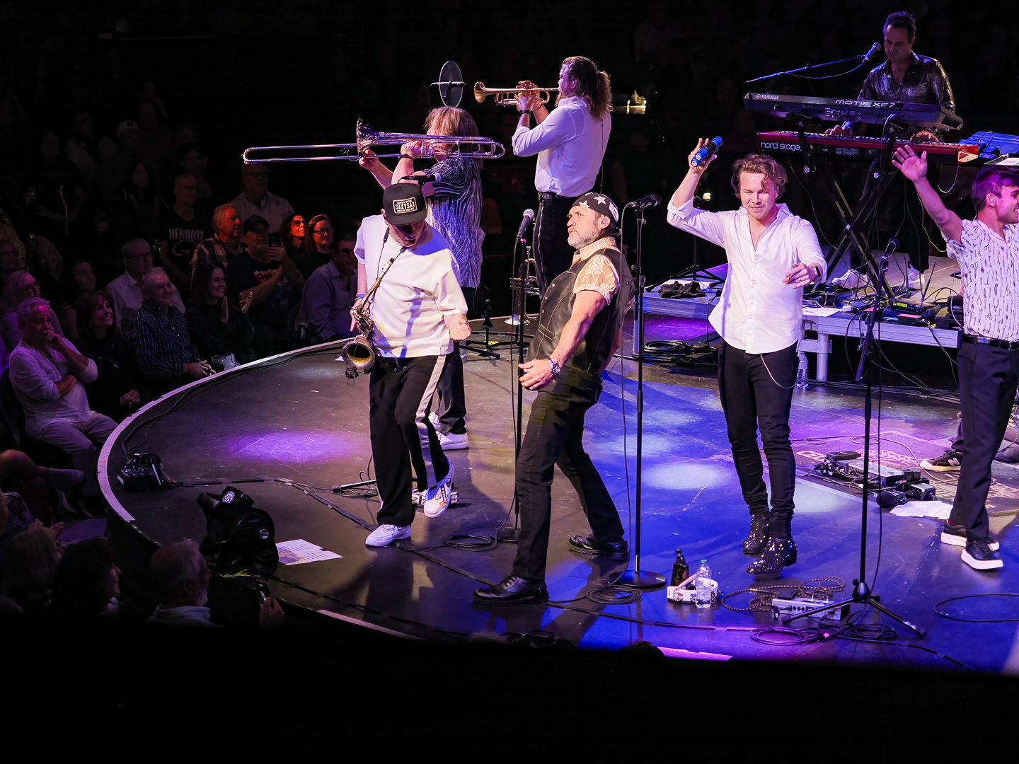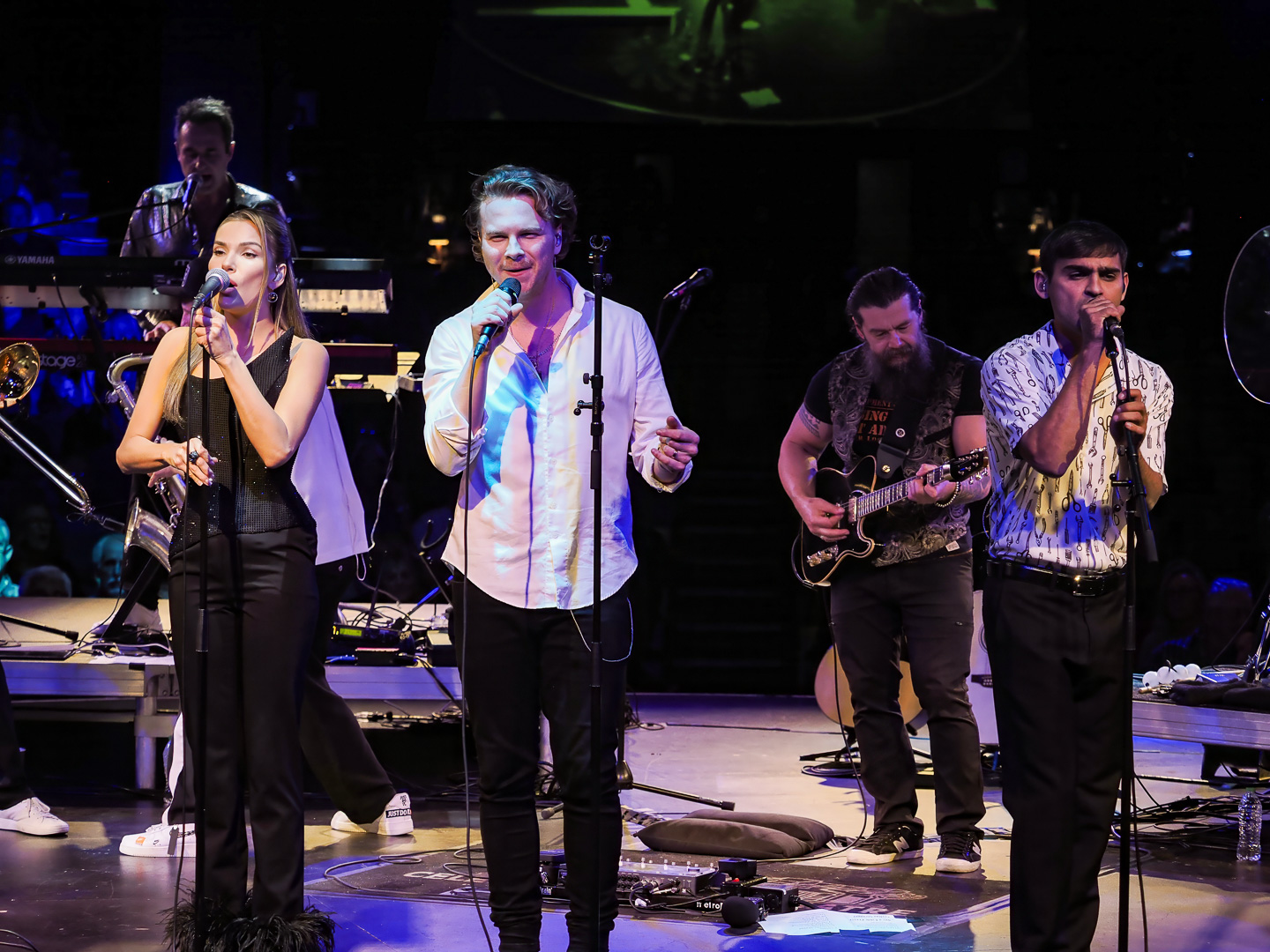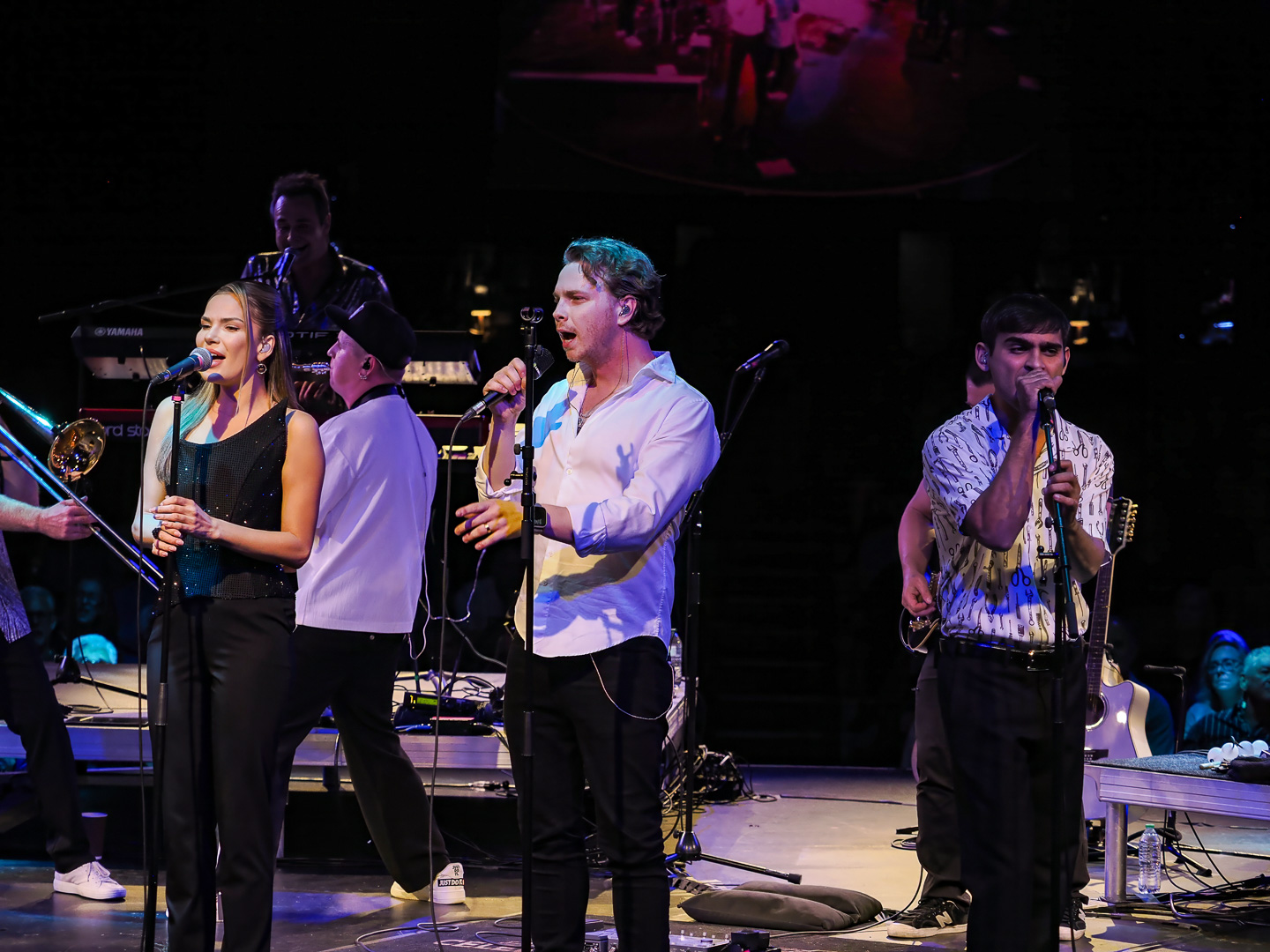 Like Chicago and Earth Wind & Fire, Leonid & Friends have a large number of members.  Leonid Vorobyev is the founding member of the band and he plays bass guitar.  The 3-piece horn section consists of Andrey Zyl, Oleg Kudryavtsev and Maxim Likhachev.  They also have 4 vocalists; Mikhail Puntov, Danil Buranov, Vasily Akimov and Ksenia Buzina.  The musicians include guitarist Konstantin Kovachev, drummer Igor Javad-Zade and keyboardist Sergey Kurmaev.  As you can see, they filled the stage at the Celebrity Theatre.