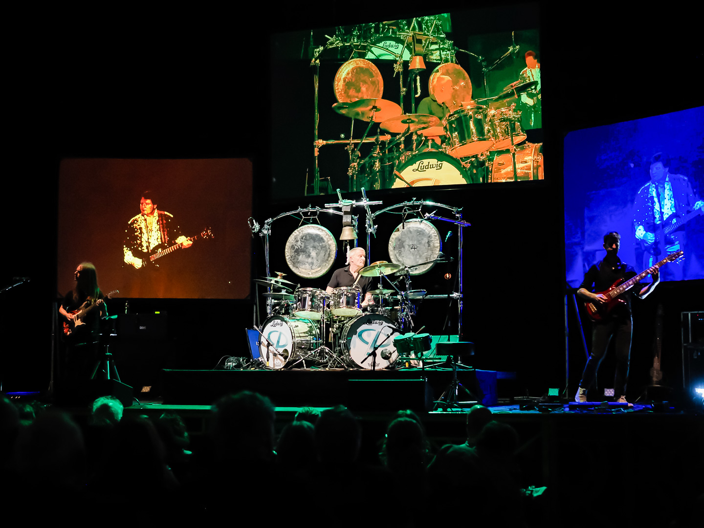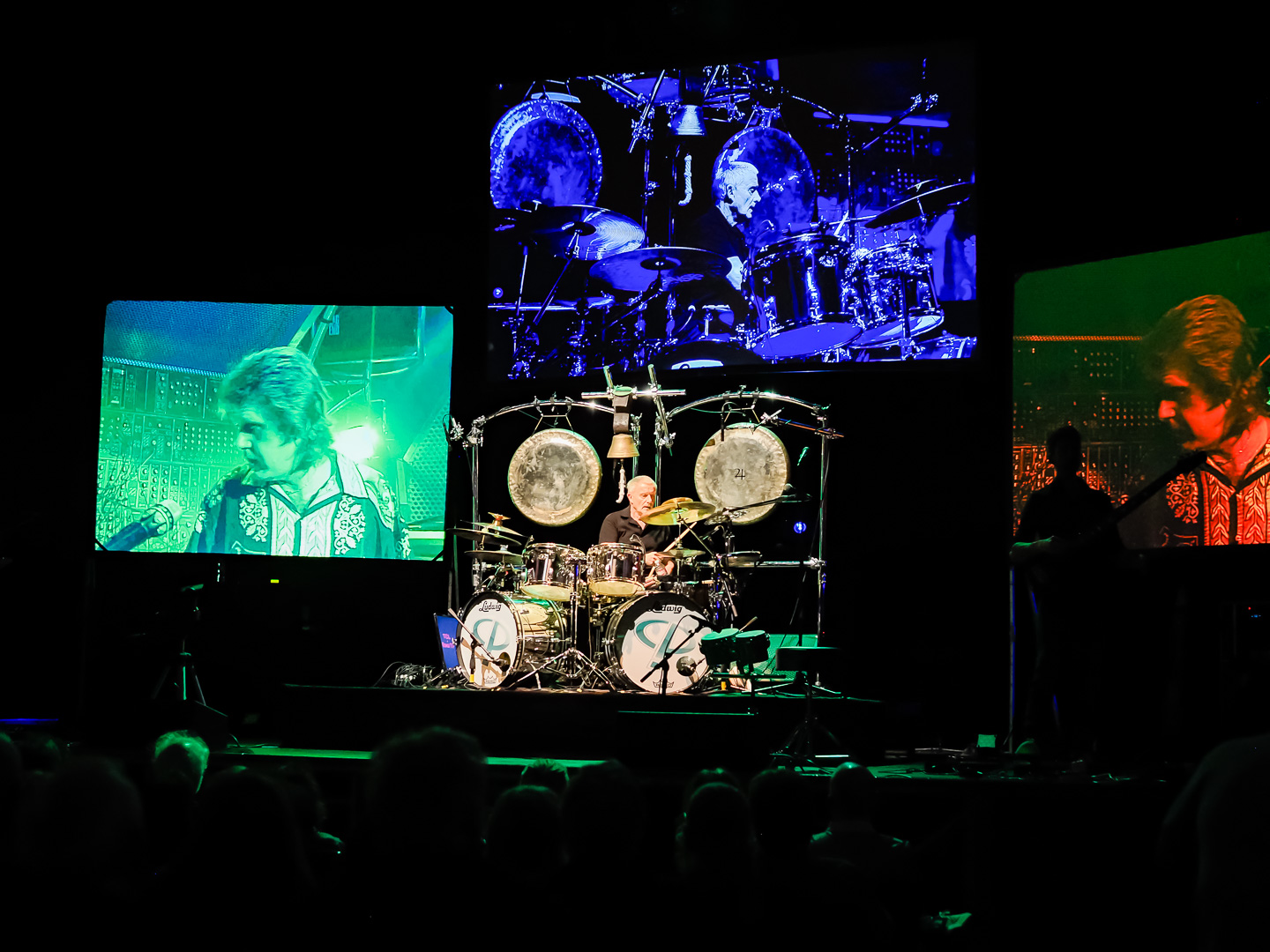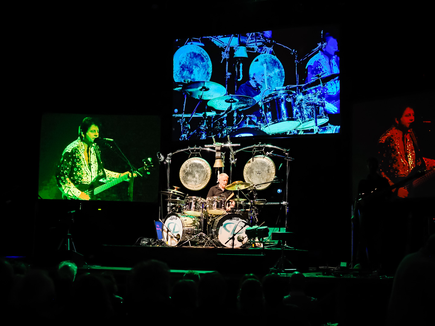 During the videos of Keith and Greg performing, they removed the drum parts of the video.  During the show, Carl provided the drum parts in sync with the videos.  Carl was so good, the drums were seamless with the videos being played.  When Paul & Simon played their guitars, they were also seamless with the concert videos.  I was shocked by how good their live performance synced with the videos.