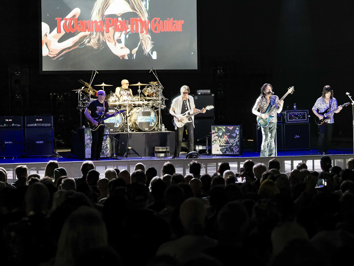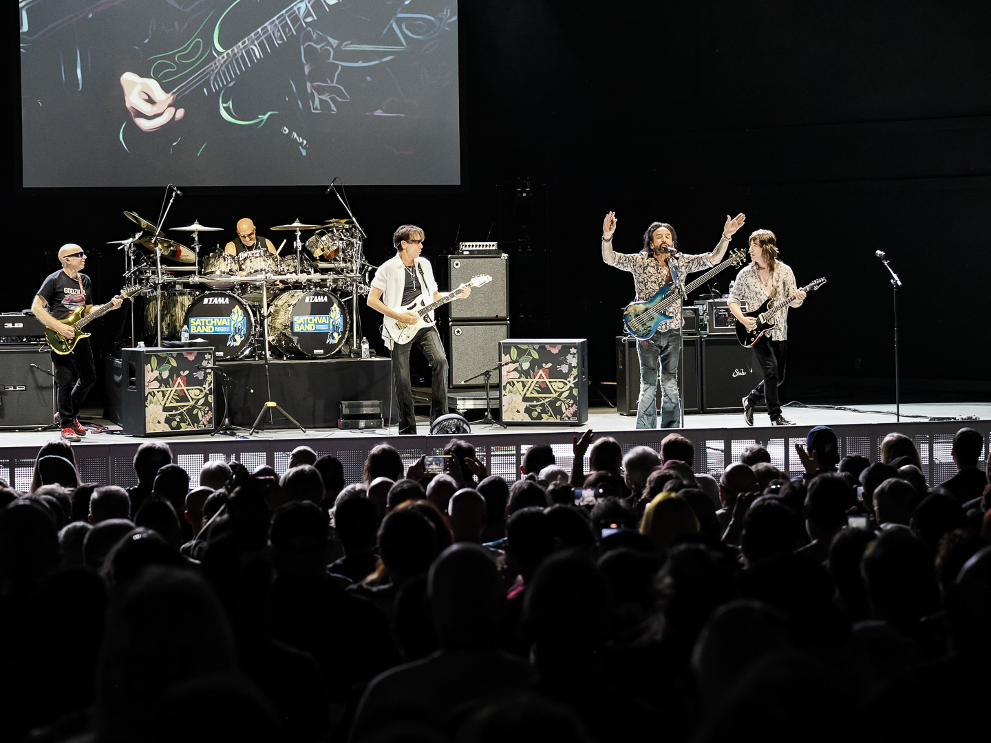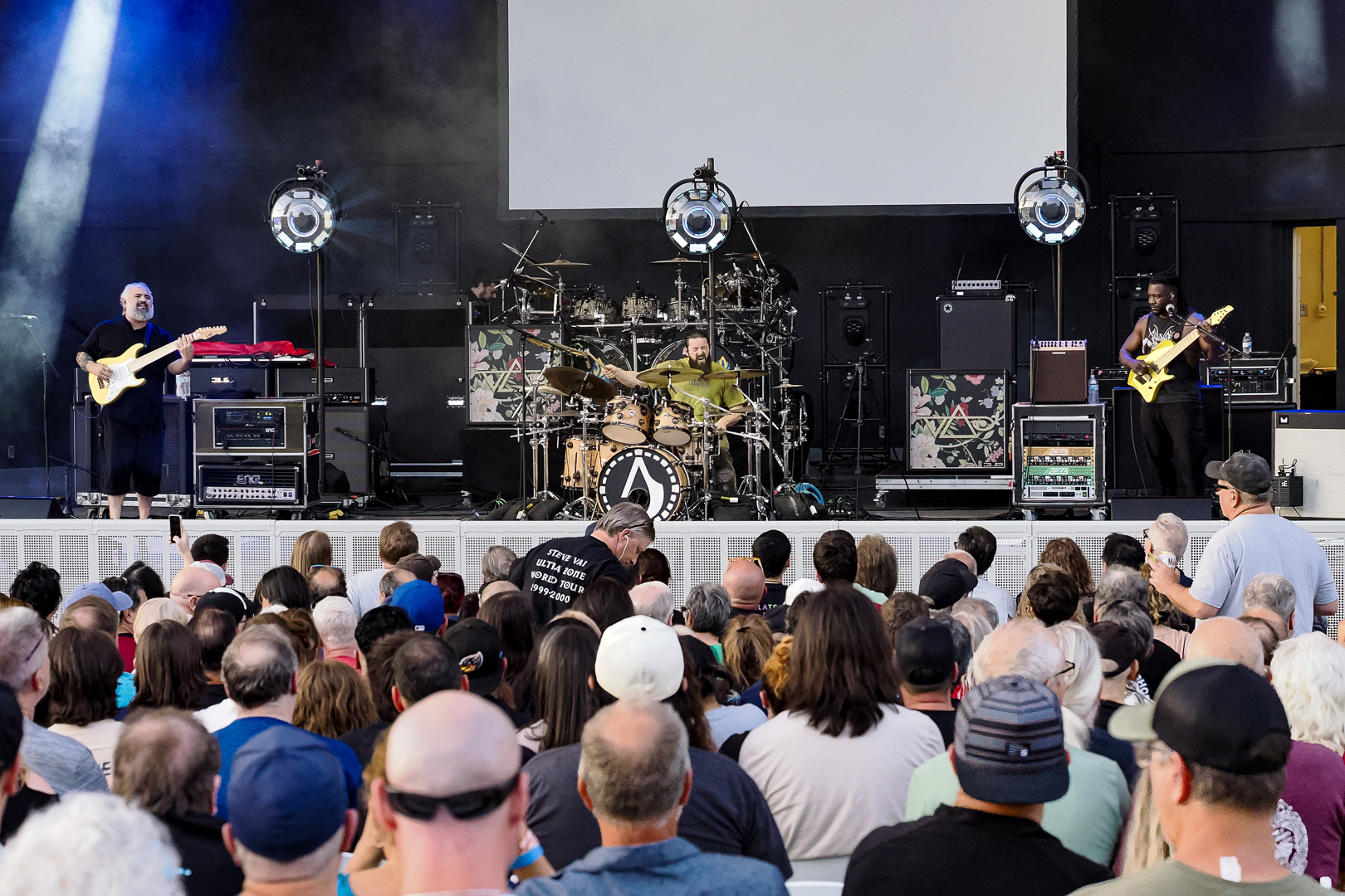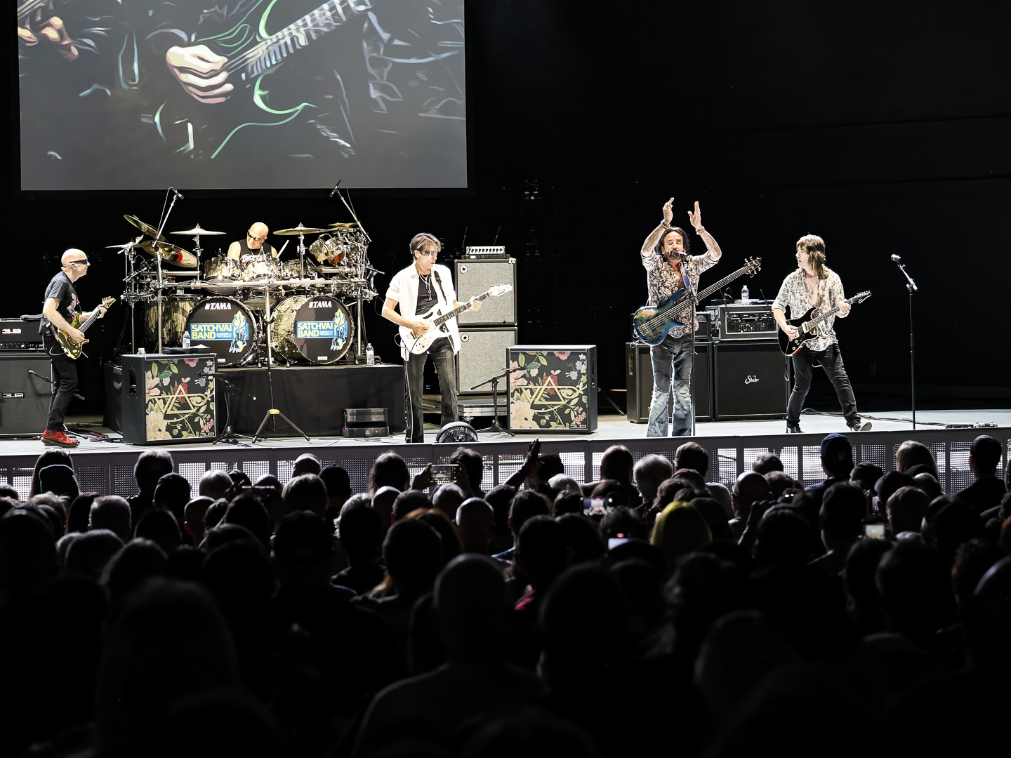 Hmmm… let’s see now. Great weather? Check. Great venue? Check. Combine those factors with two of rock’s most significant guitar virtuosos of the 1980s joining forces together in the SatchVai Band, it all added up to one happy (and laid back) audience on Friday April 10th.