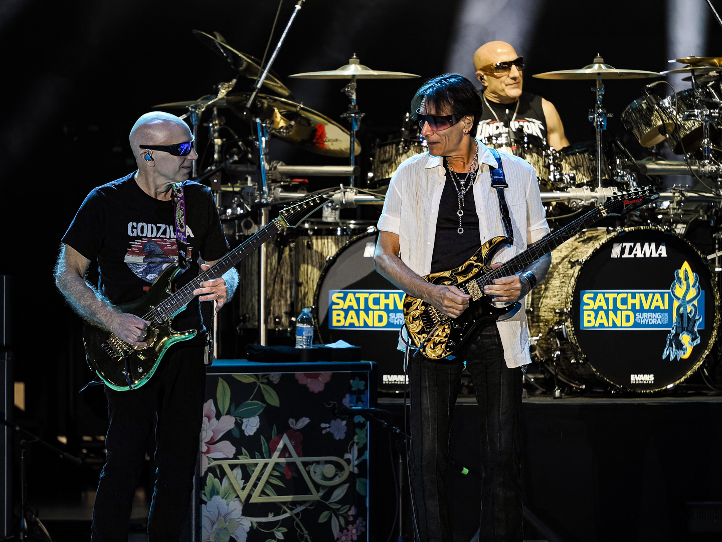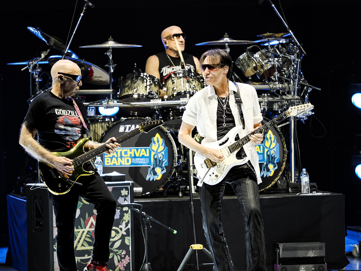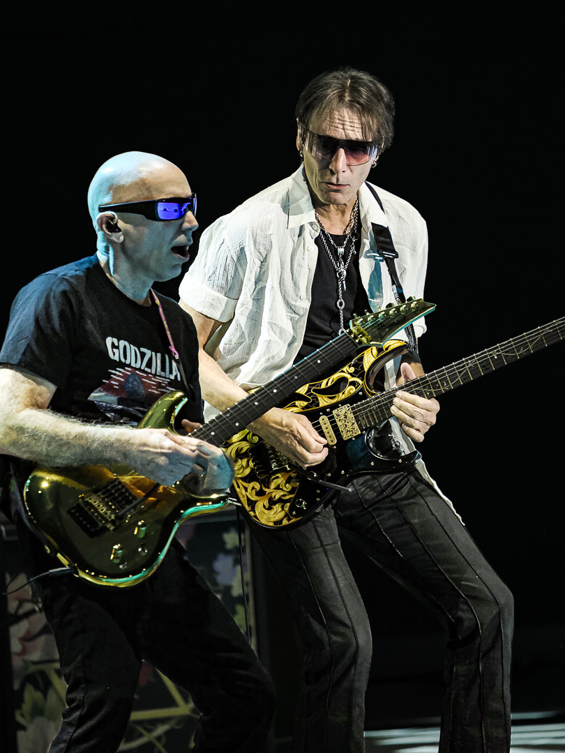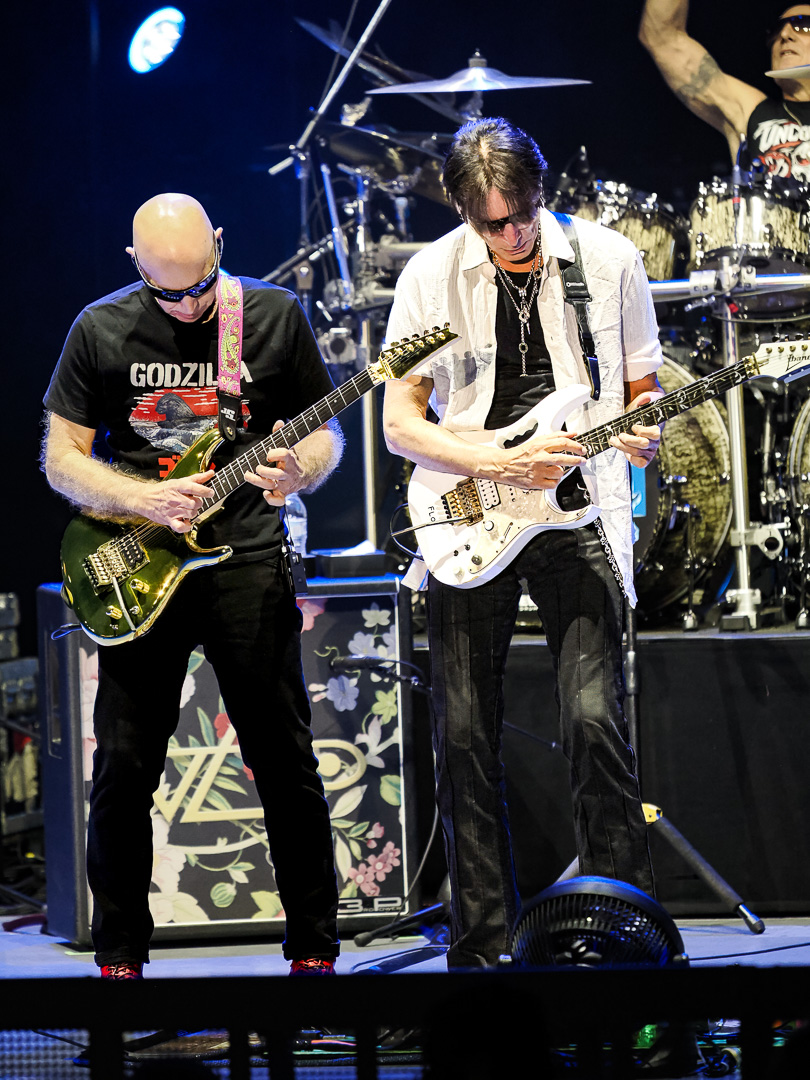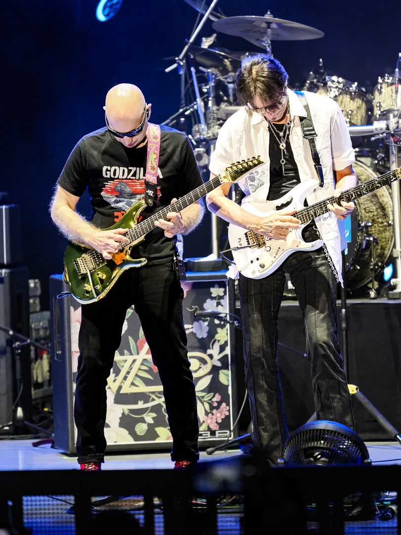 On this tour, Satriani and Vai incorporate a “tag team” approach, as Vai described to Beneath A Desert Sky in a recent interview. Immediately following “The Sea Of Emotion, Pt. 1” Satriani exited stage right while Vai went into “Zeus In Chains” followed by “Little Pretty” (both from his 2022 album Inviolate).